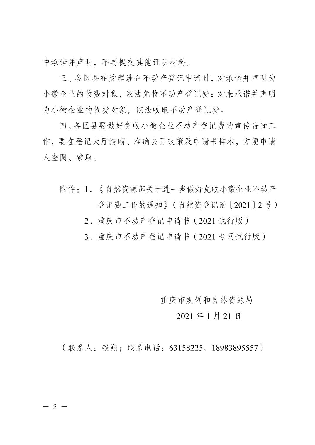 重慶市規劃和自然資源局關于做好免收小微企業不動產登記費有關工作的通知">