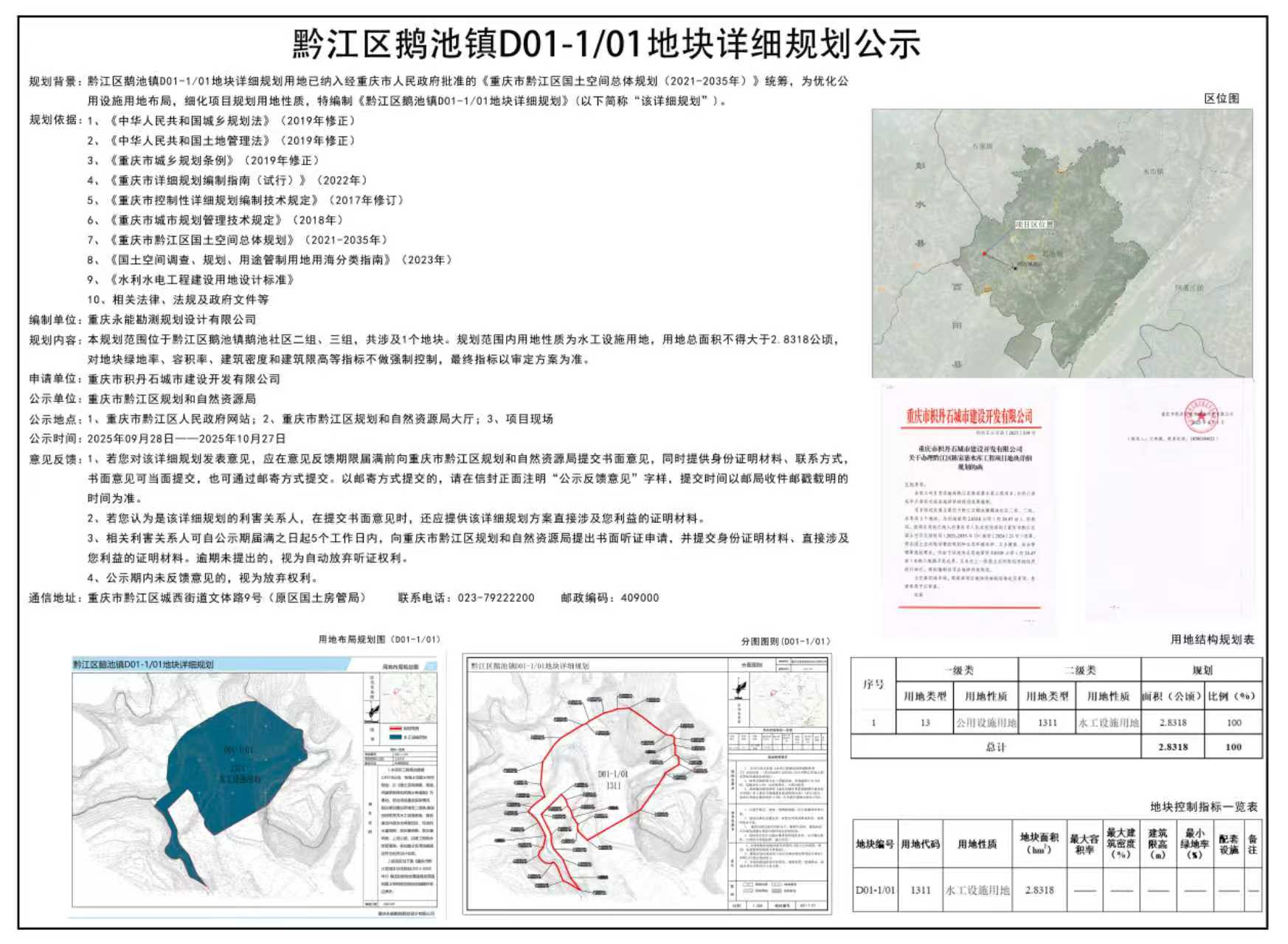 黔江區(qū)鵝池鎮(zhèn)D01-101地塊詳細規(guī)劃公告
