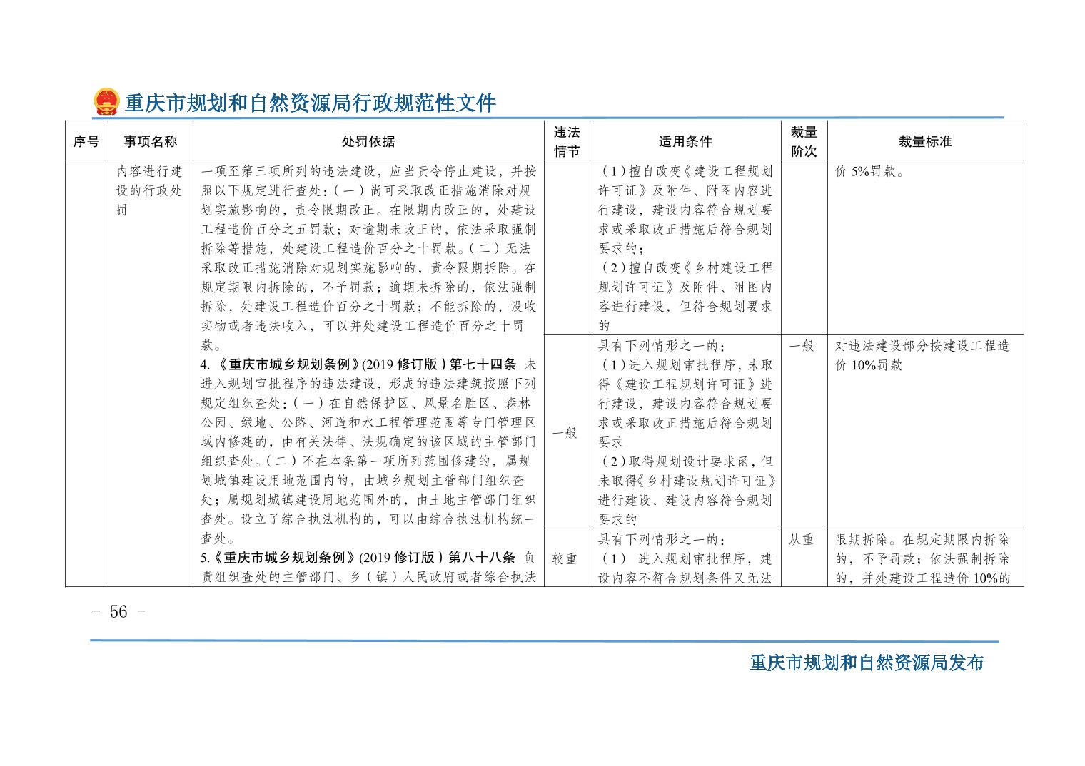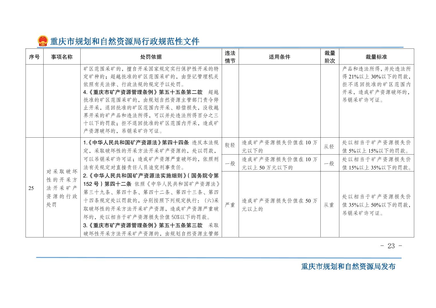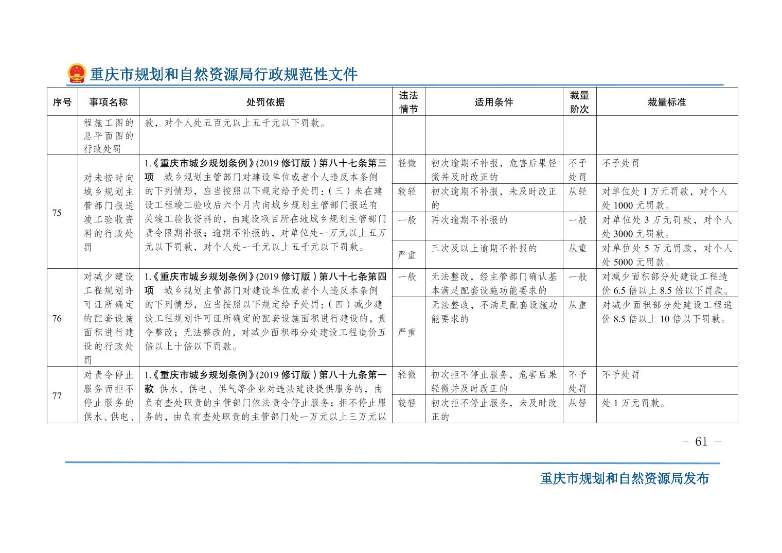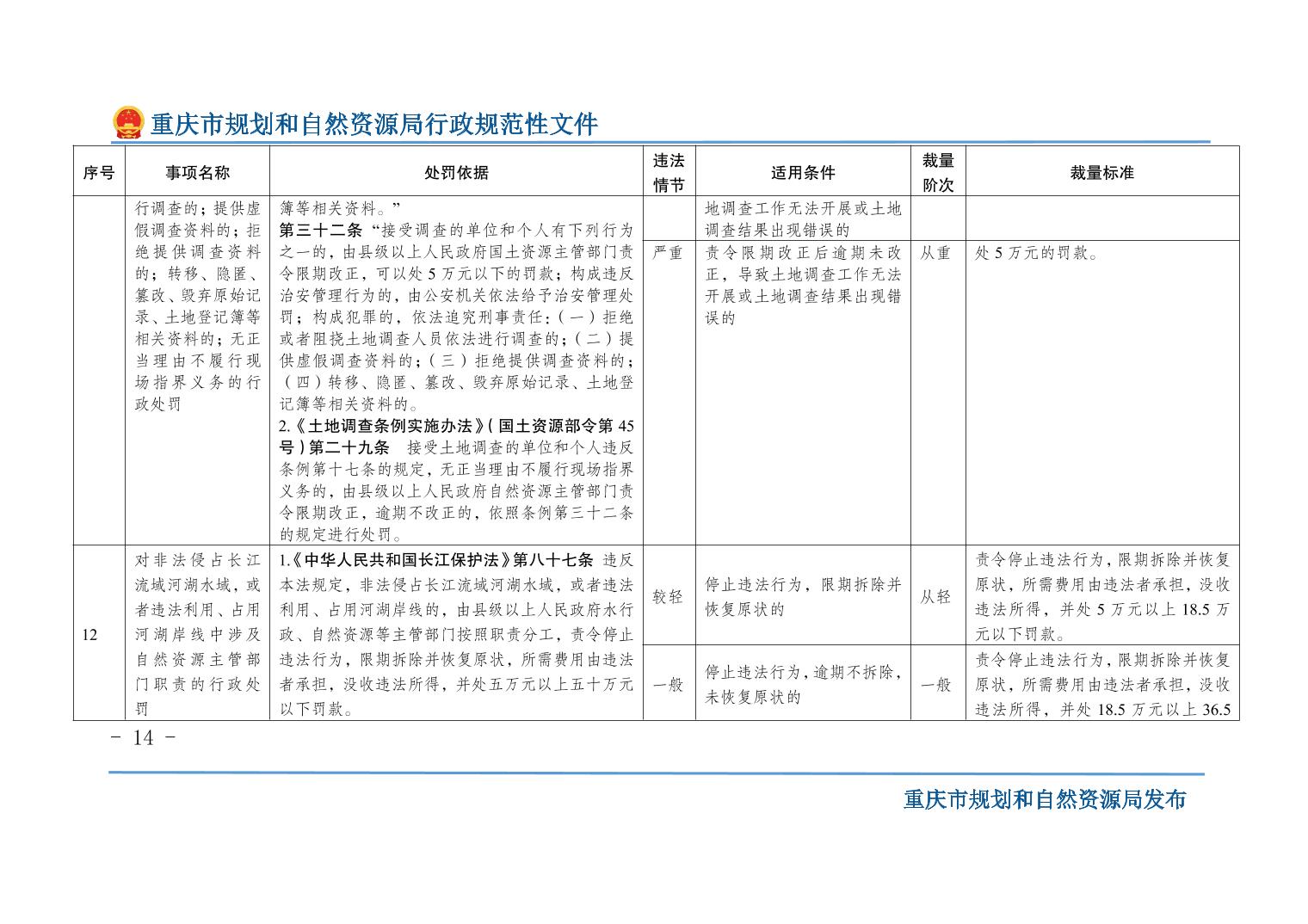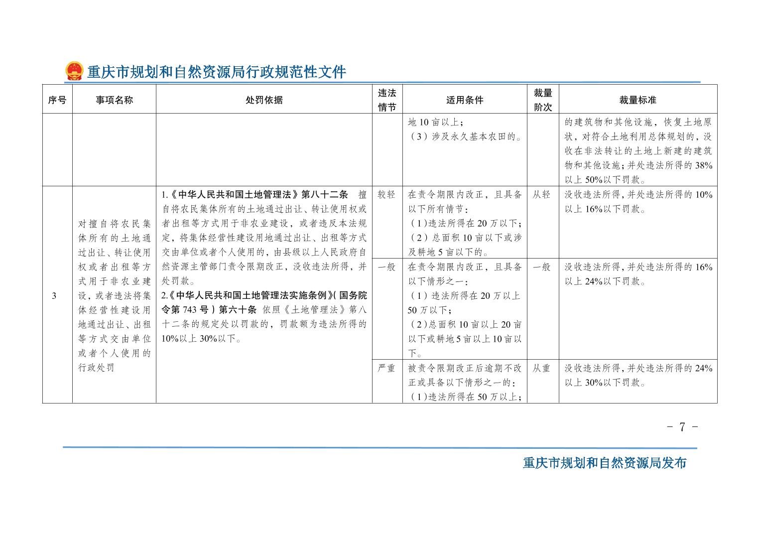 重慶市規(guī)劃和自然資源局關(guān)于印發(fā)《重慶市規(guī)劃和自然資源行政處罰裁量基準(zhǔn)》的通知