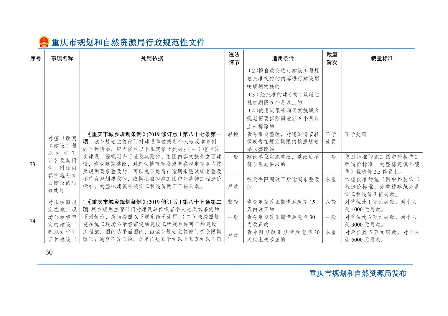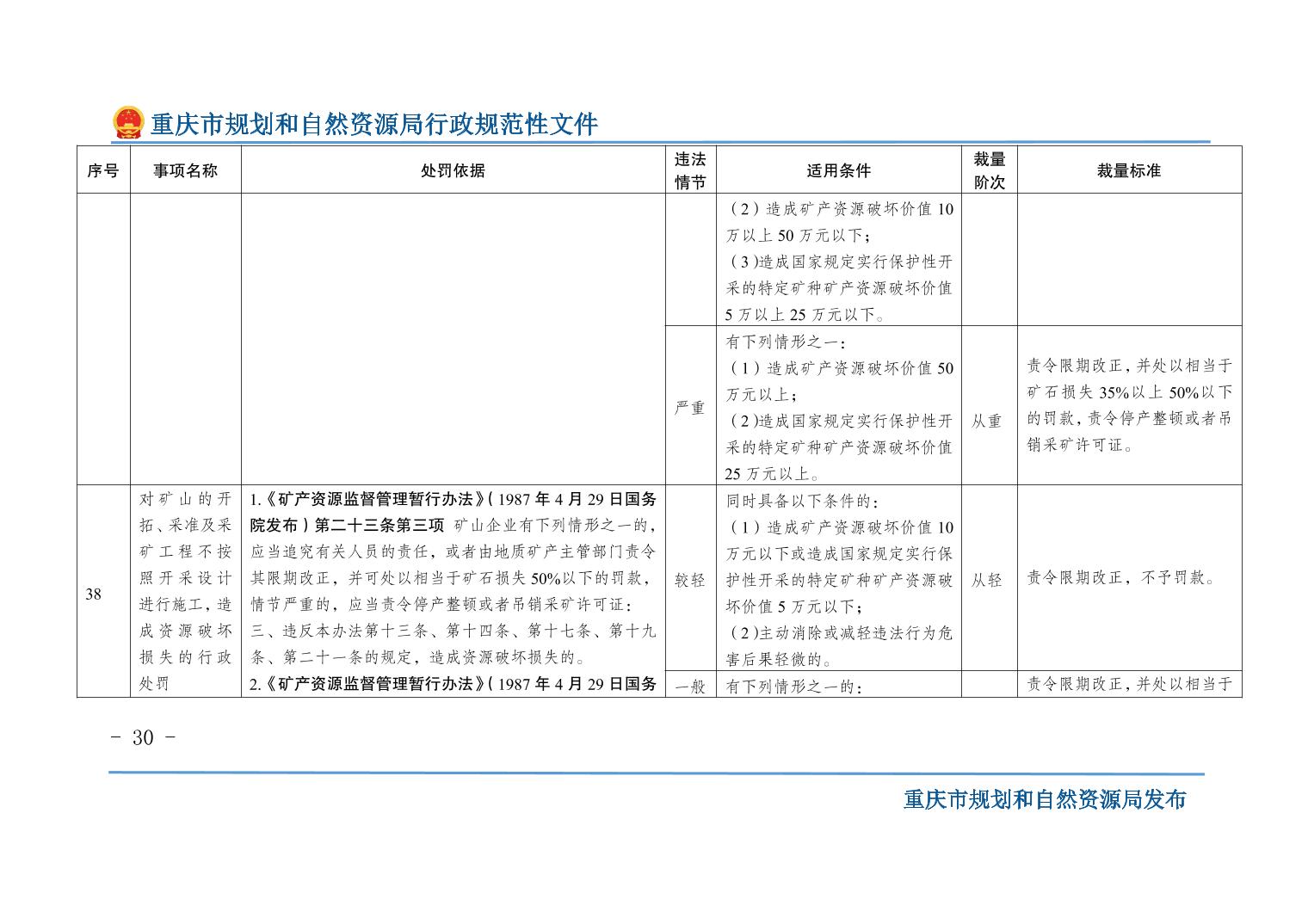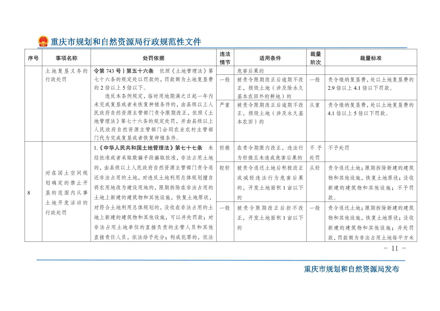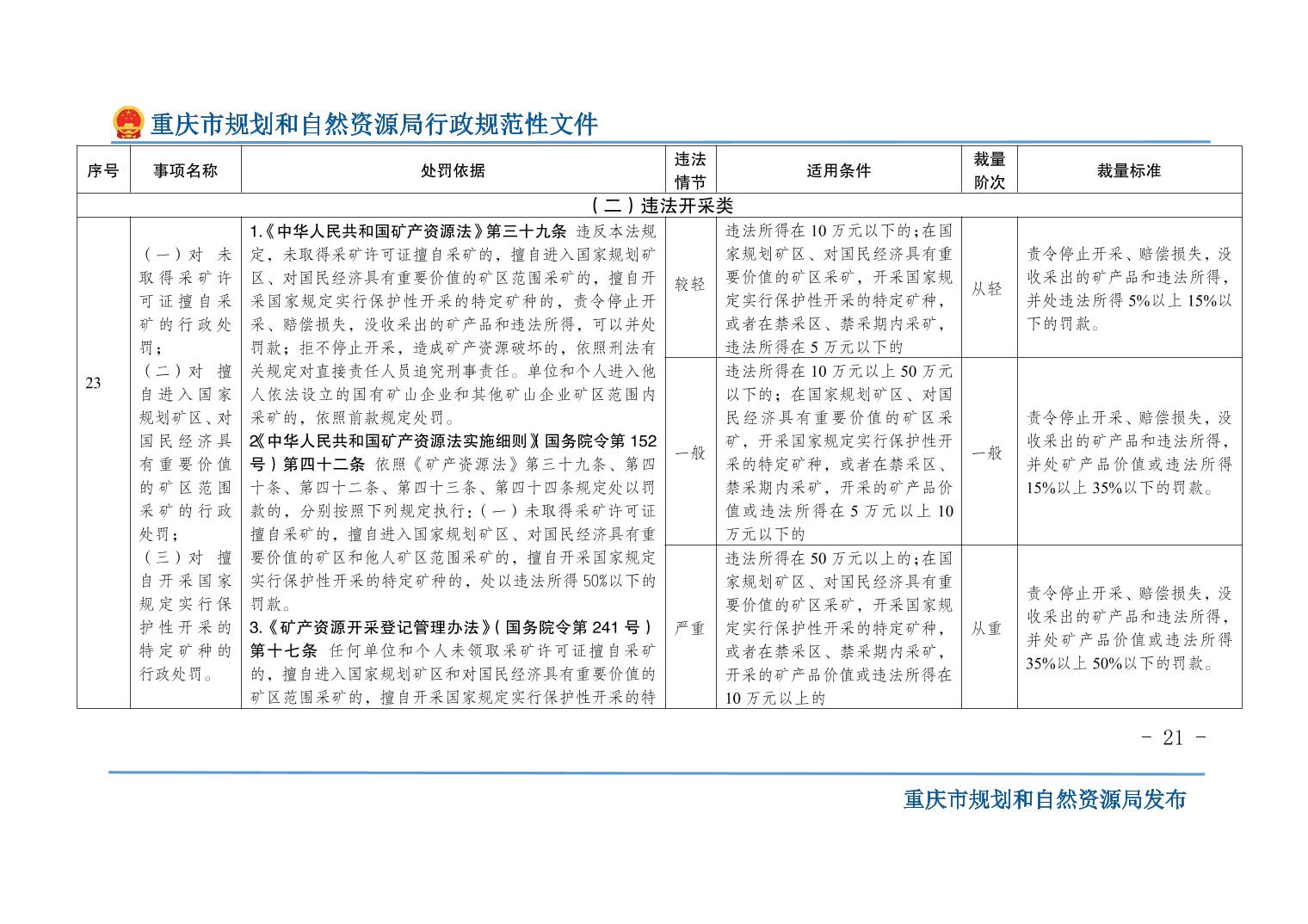 重慶市規(guī)劃和自然資源局關(guān)于印發(fā)《重慶市規(guī)劃和自然資源行政處罰裁量基準(zhǔn)》的通知