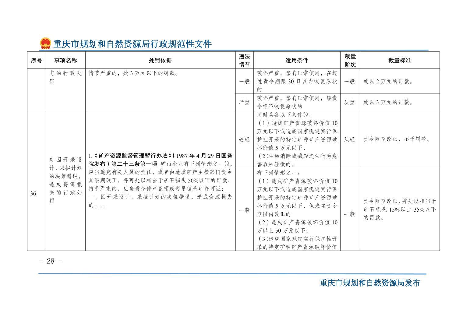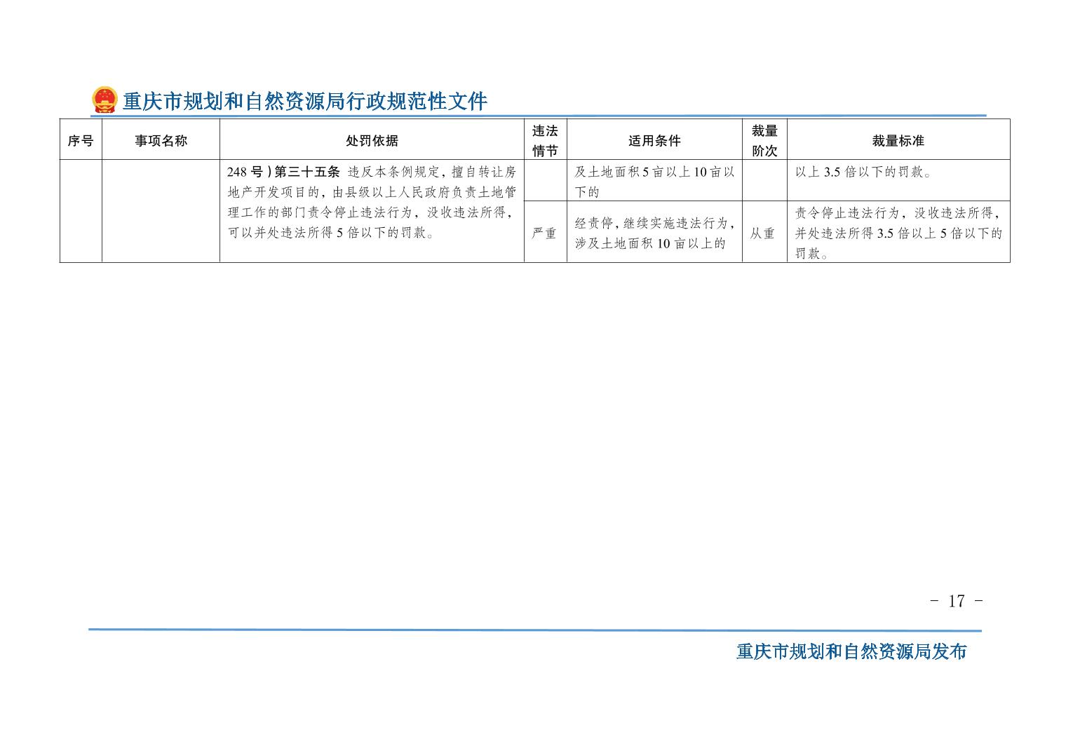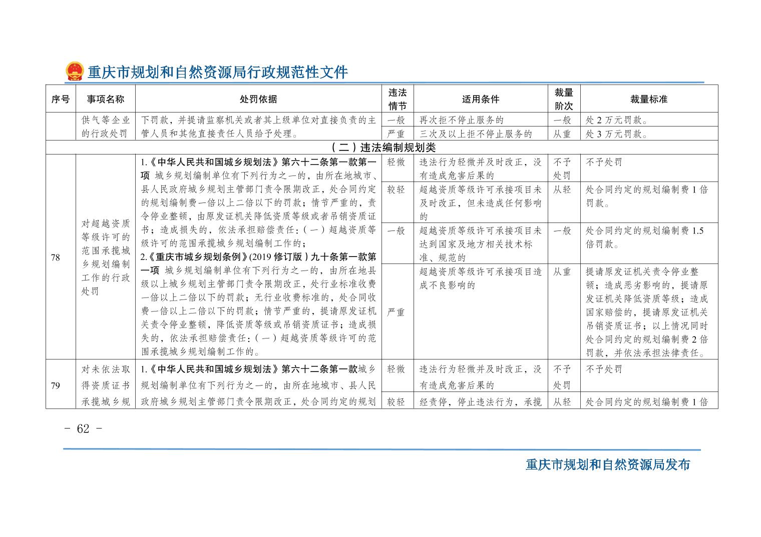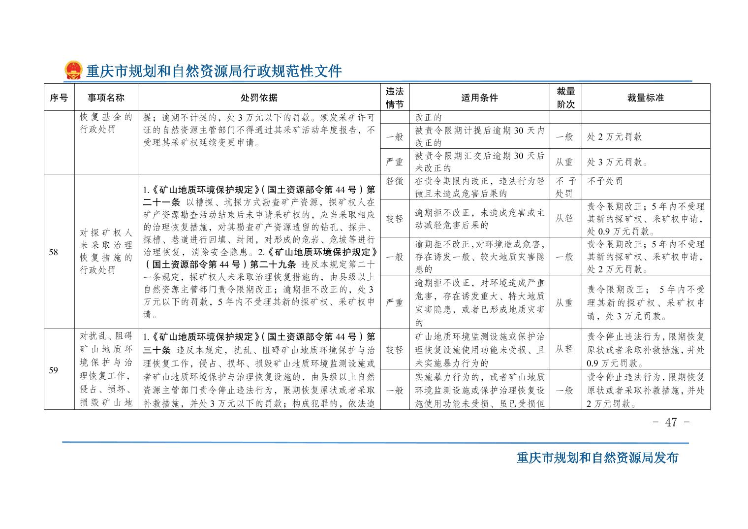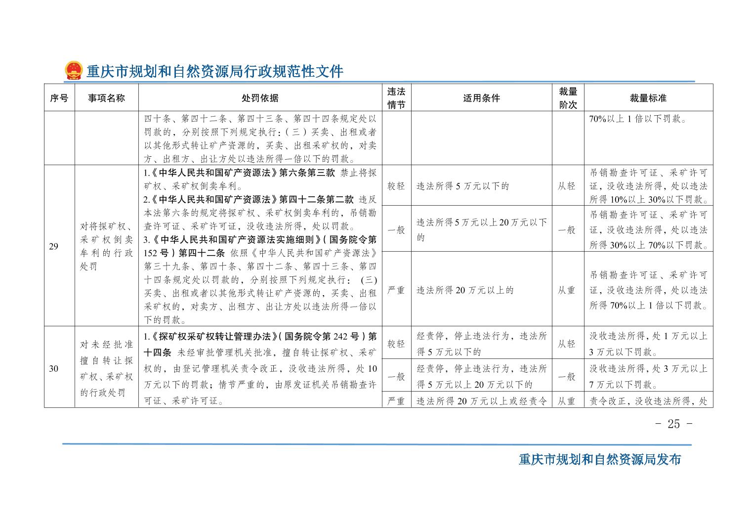 重慶市規(guī)劃和自然資源局關(guān)于印發(fā)《重慶市規(guī)劃和自然資源行政處罰裁量基準(zhǔn)》的通知