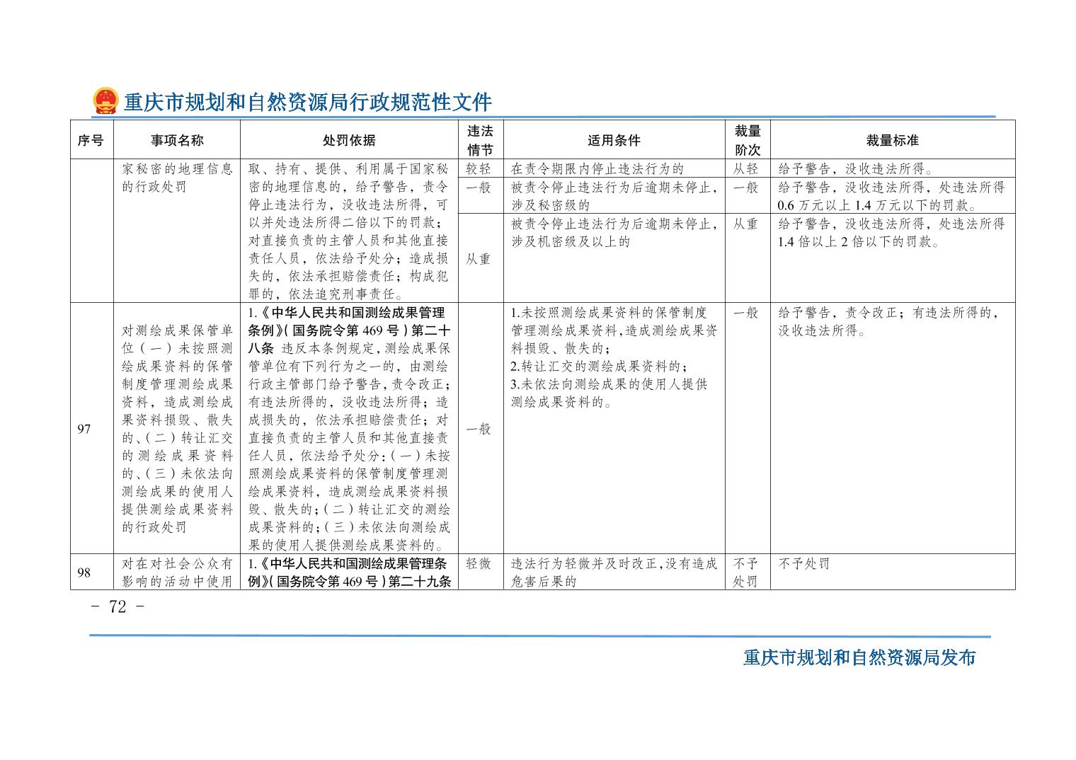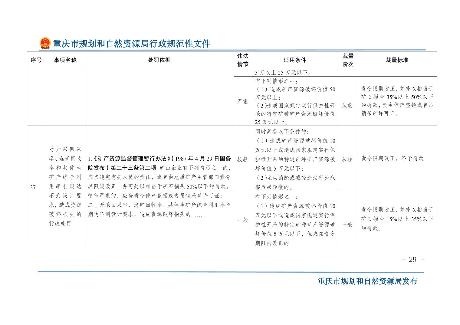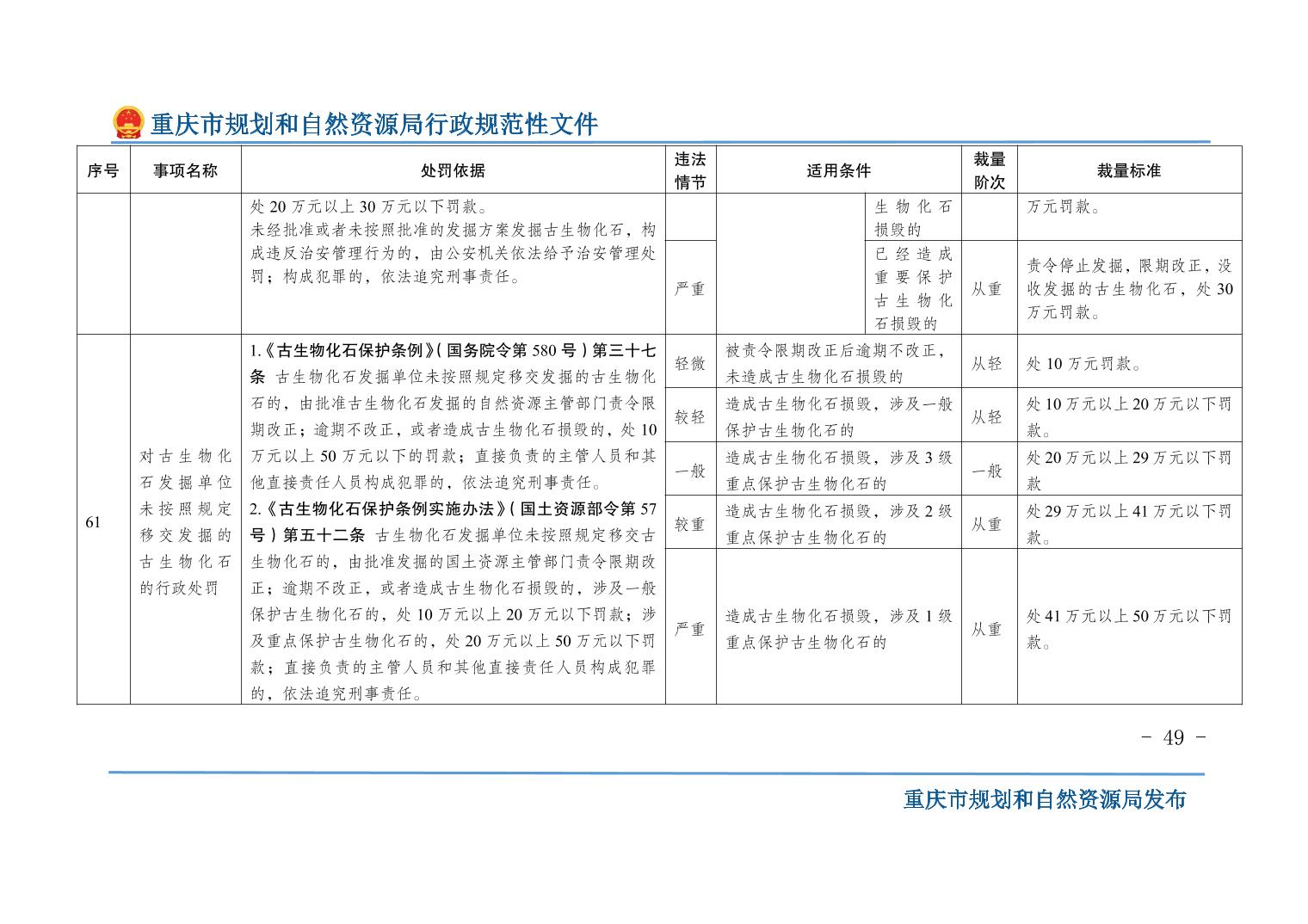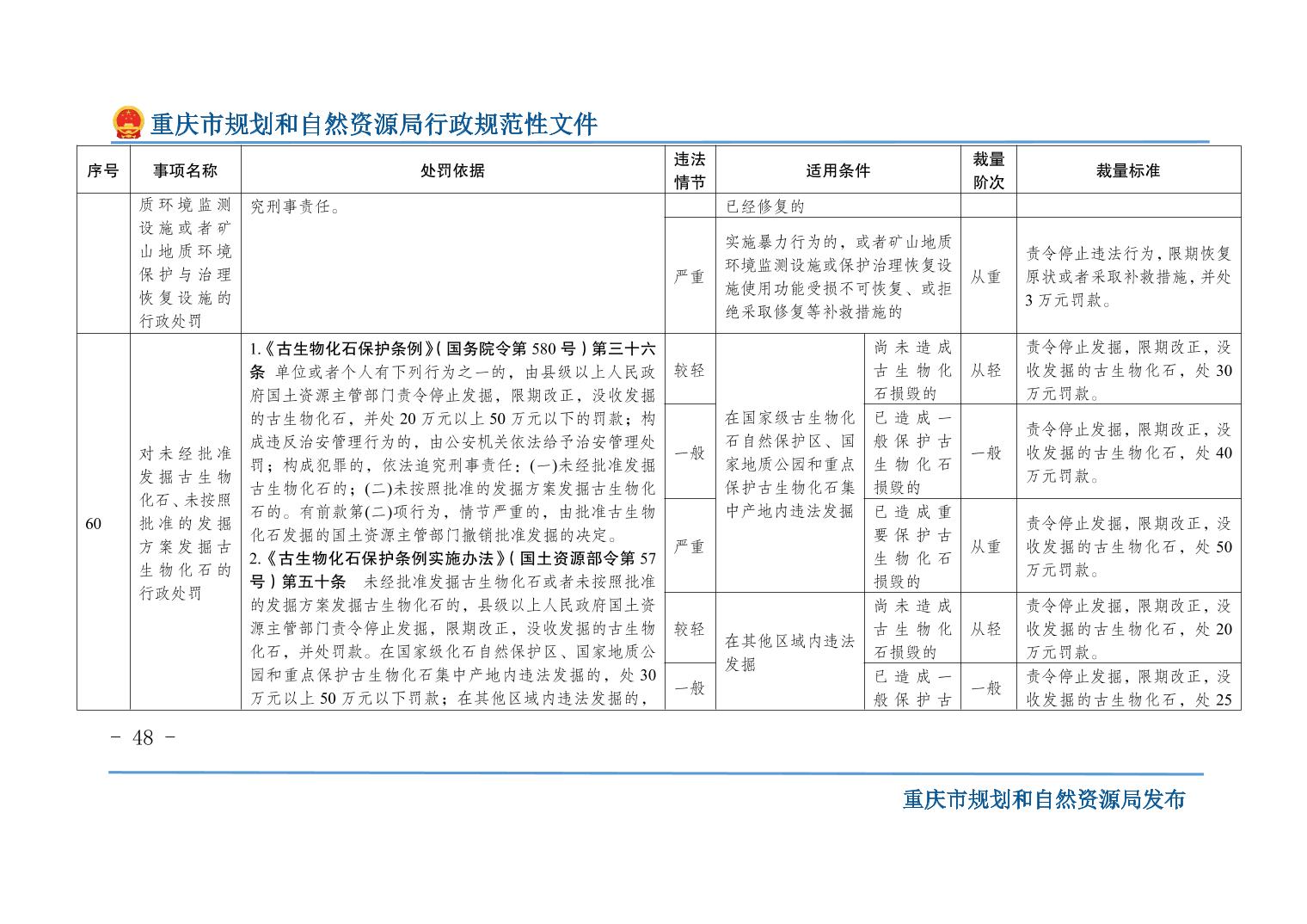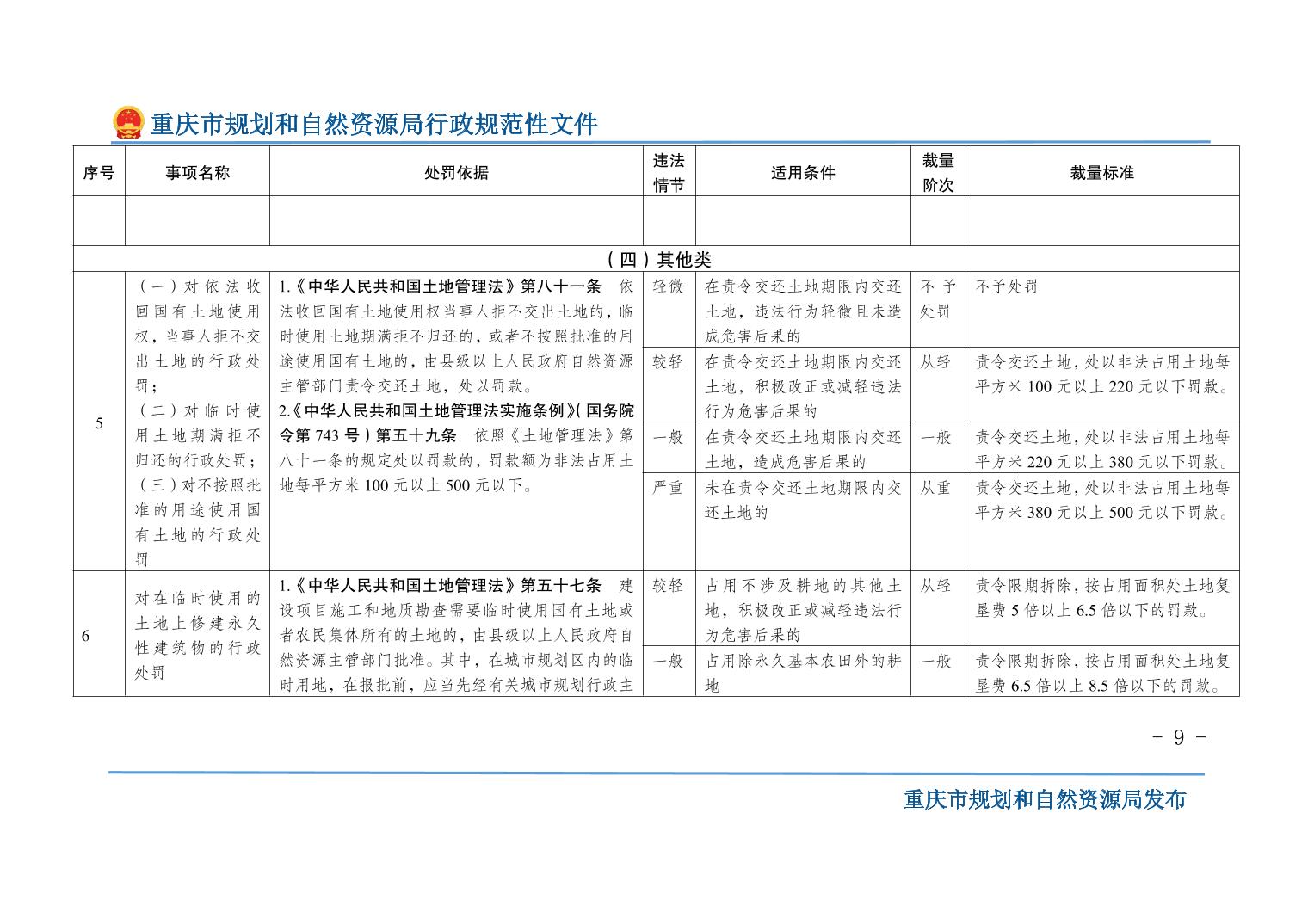 重慶市規(guī)劃和自然資源局關(guān)于印發(fā)《重慶市規(guī)劃和自然資源行政處罰裁量基準(zhǔn)》的通知