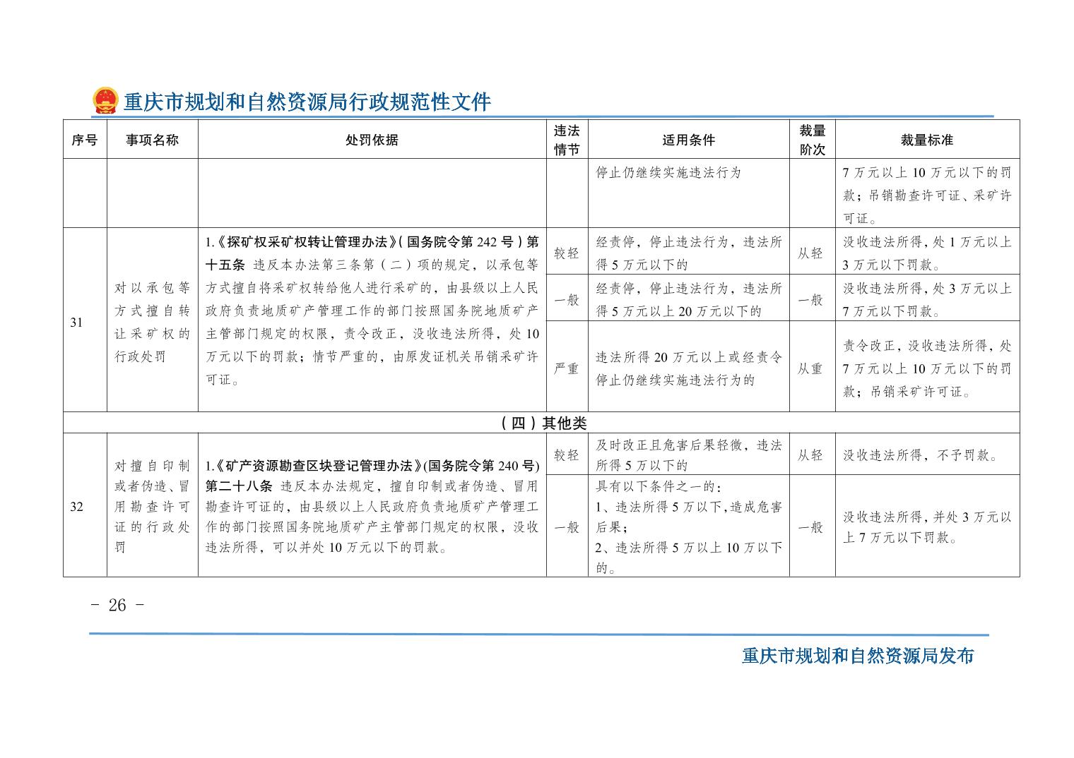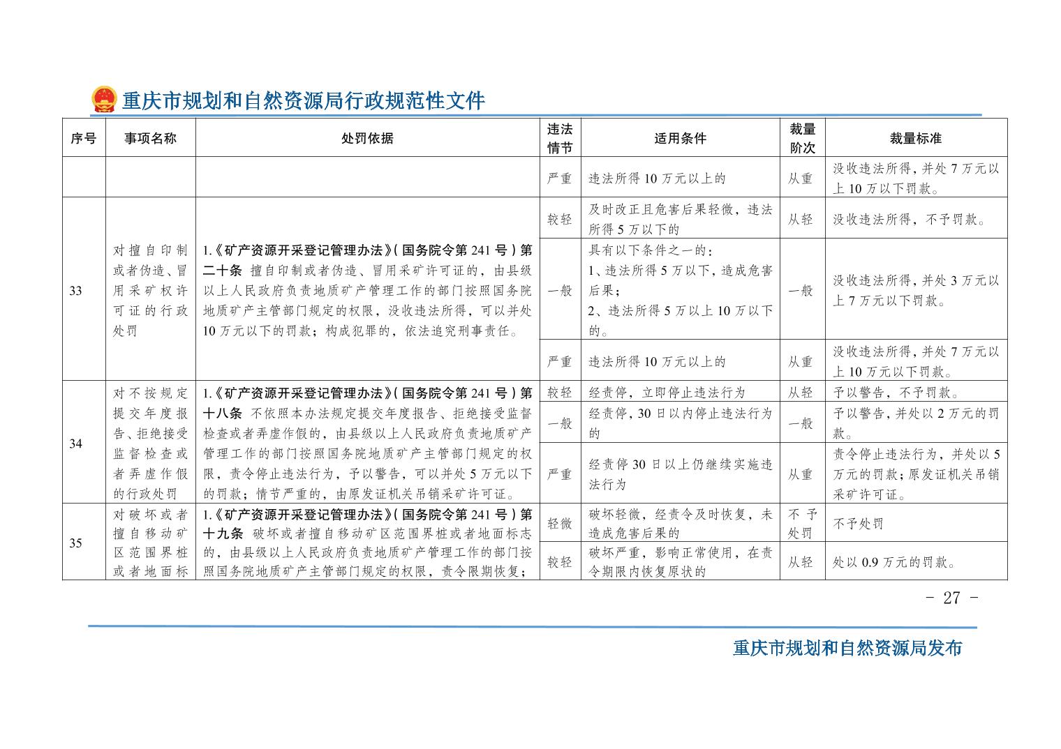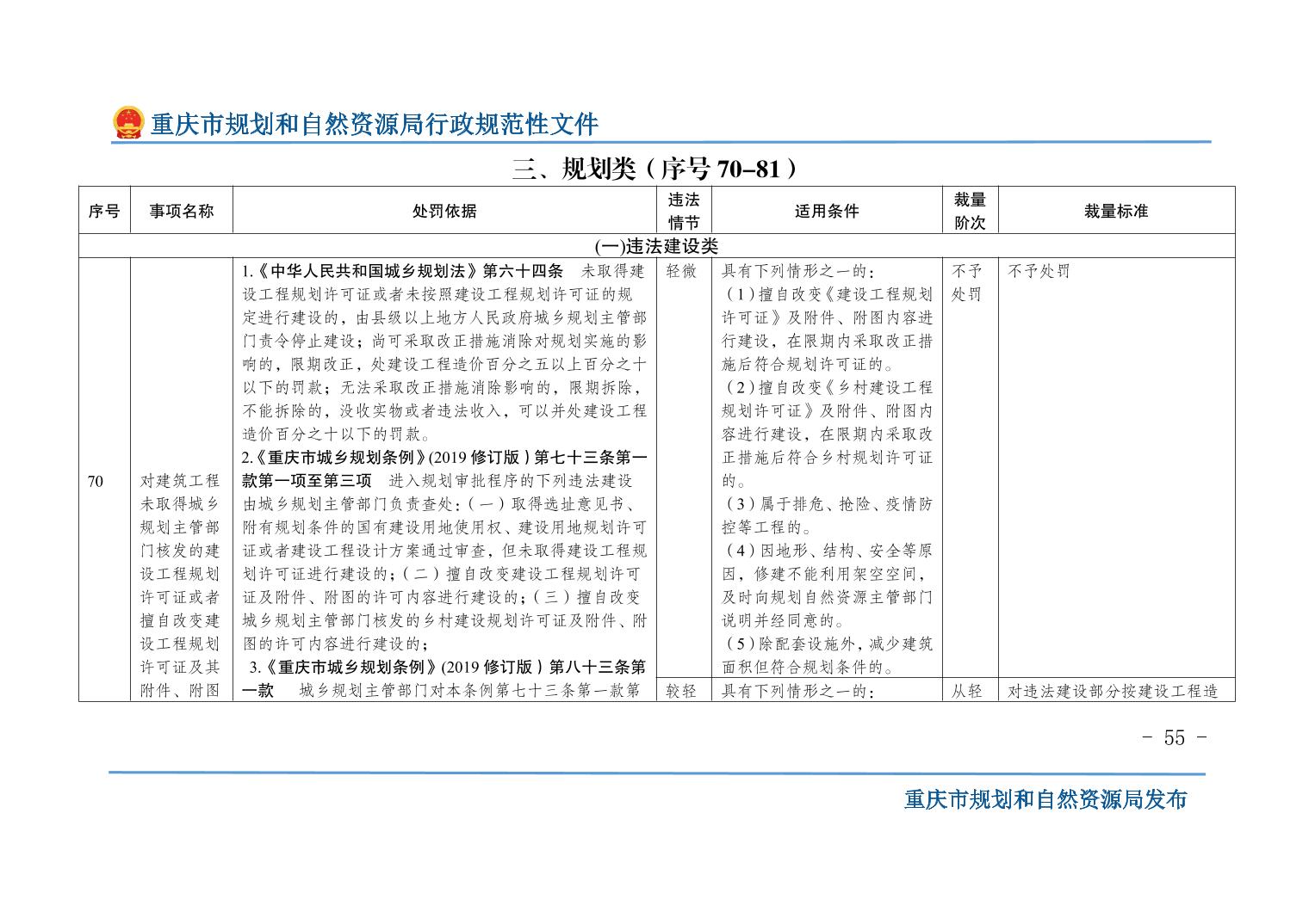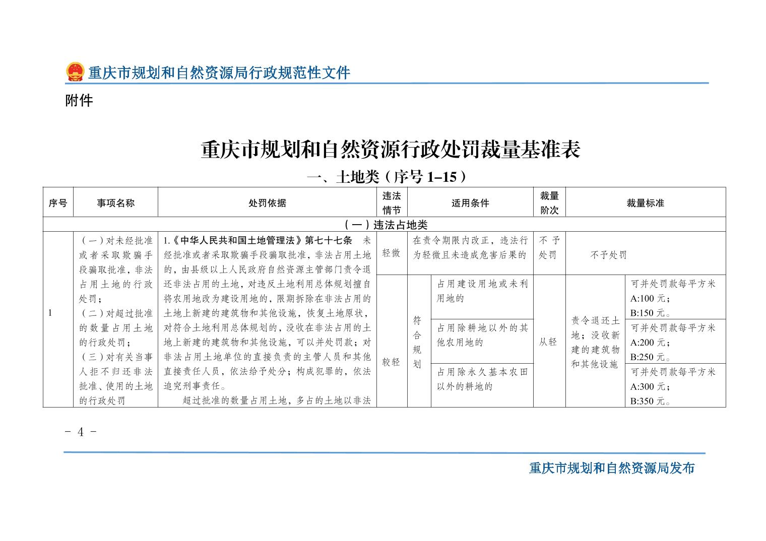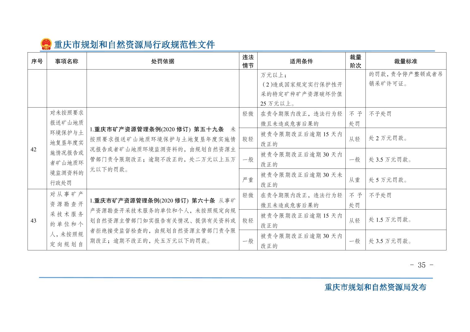 重慶市規(guī)劃和自然資源局關(guān)于印發(fā)《重慶市規(guī)劃和自然資源行政處罰裁量基準(zhǔn)》的通知