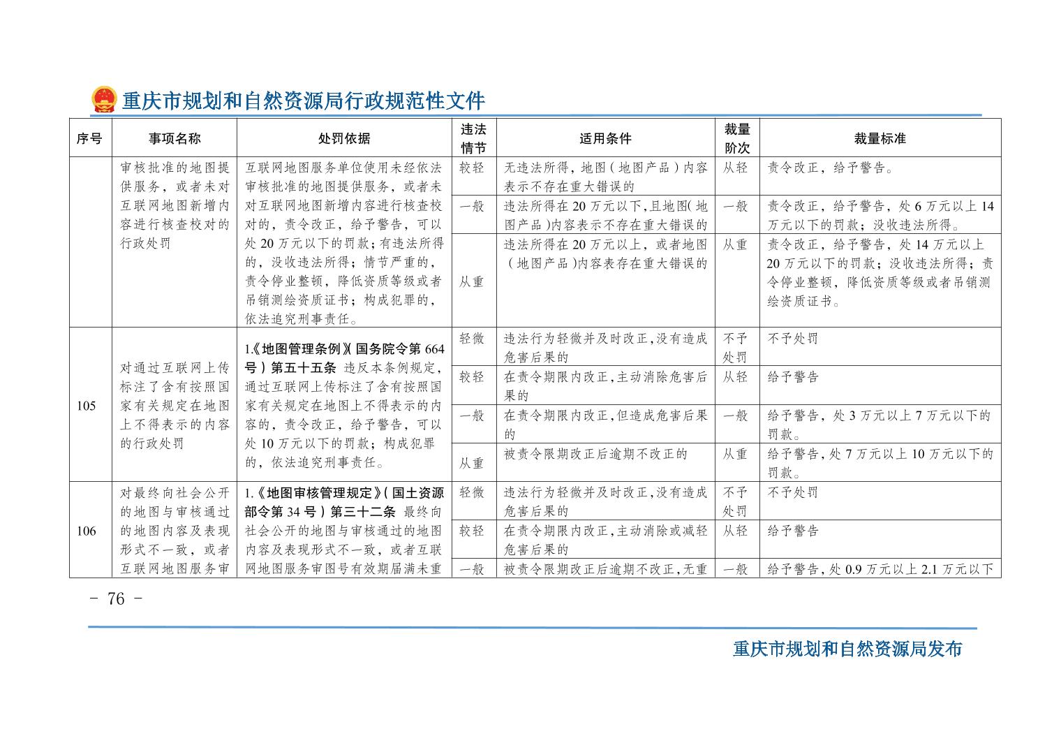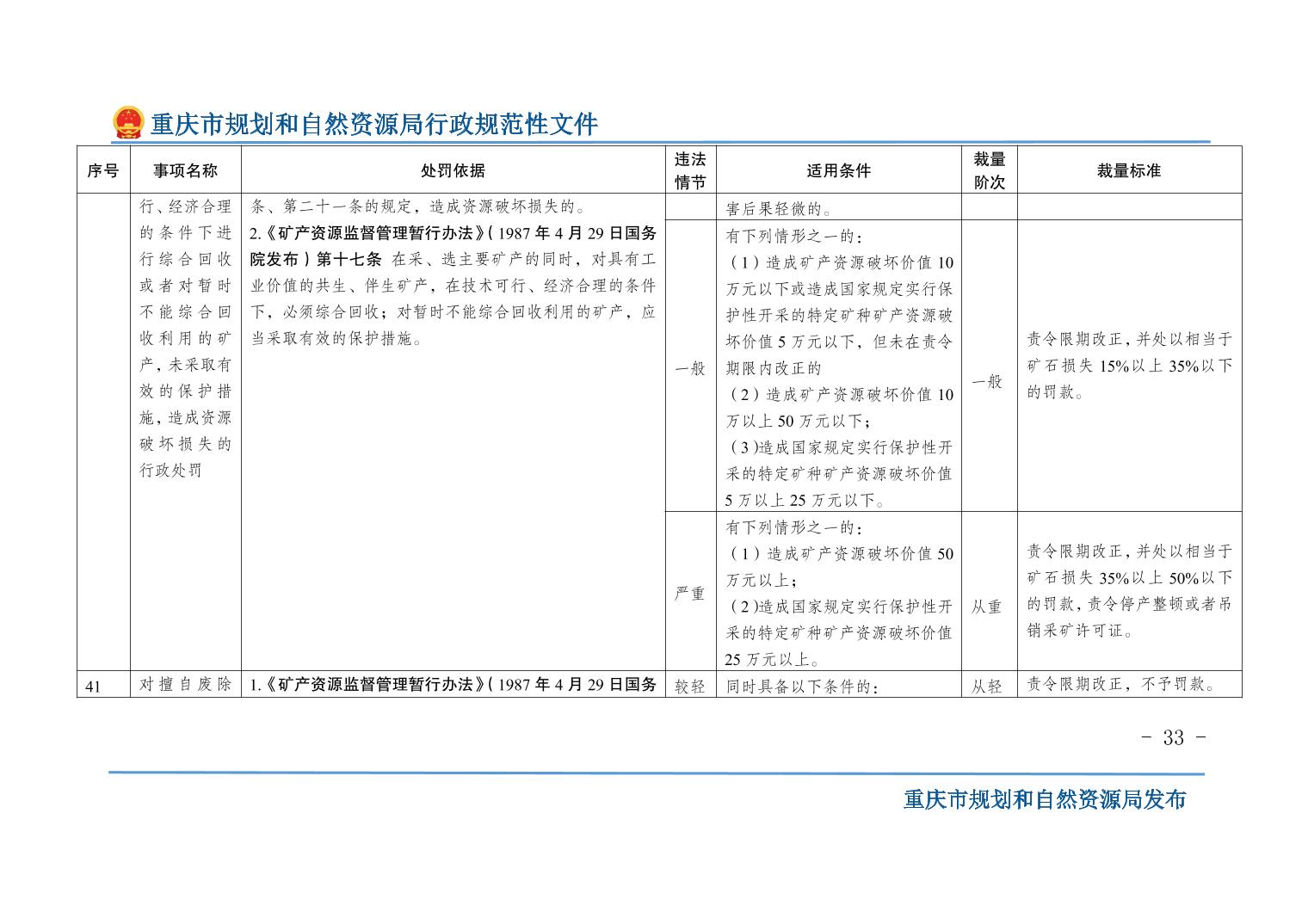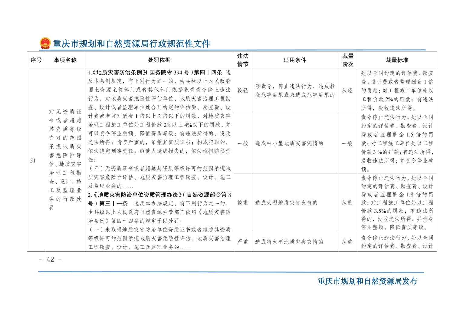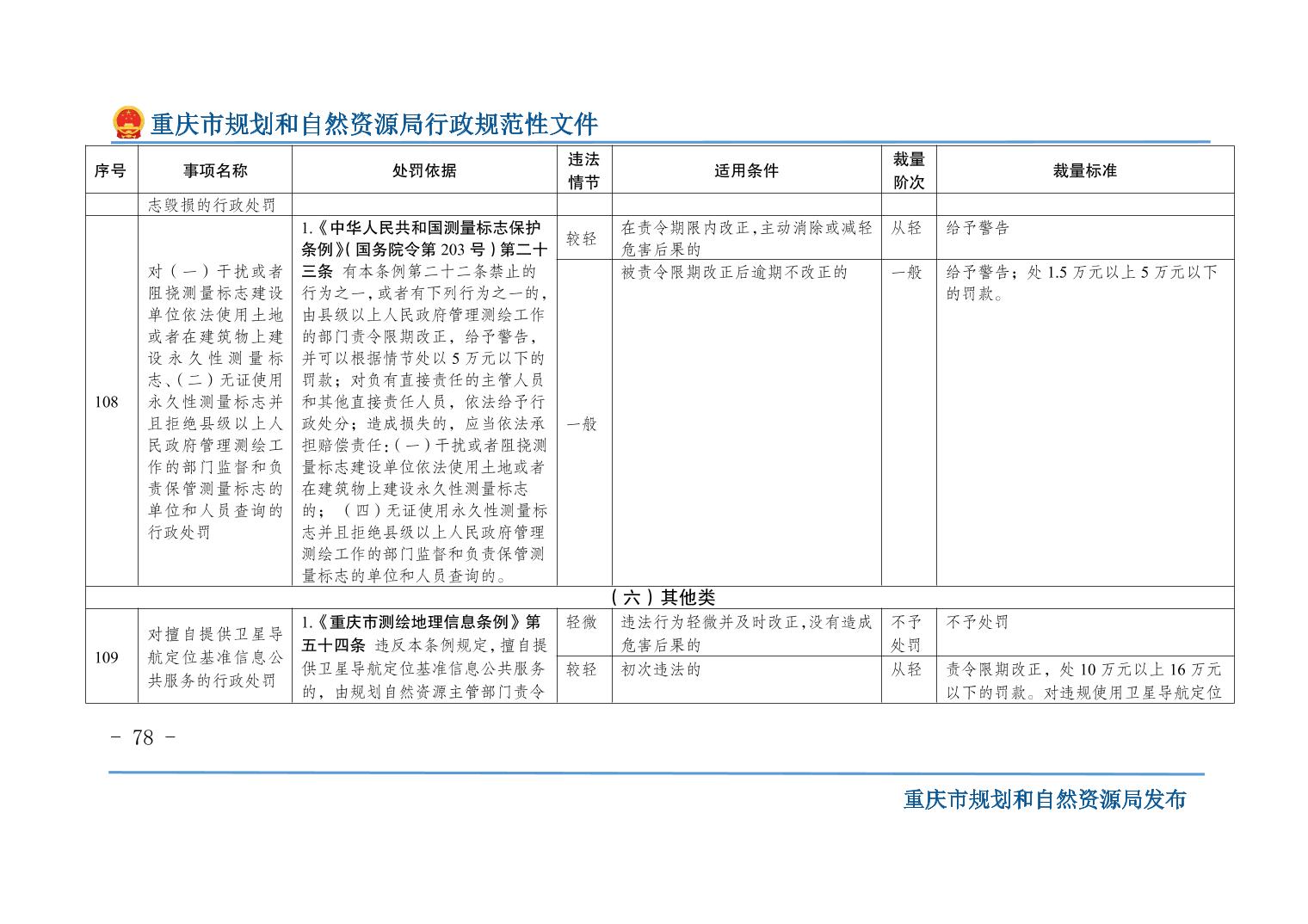 重慶市規(guī)劃和自然資源局關(guān)于印發(fā)《重慶市規(guī)劃和自然資源行政處罰裁量基準(zhǔn)》的通知