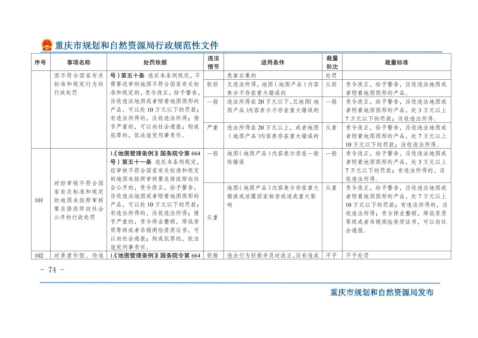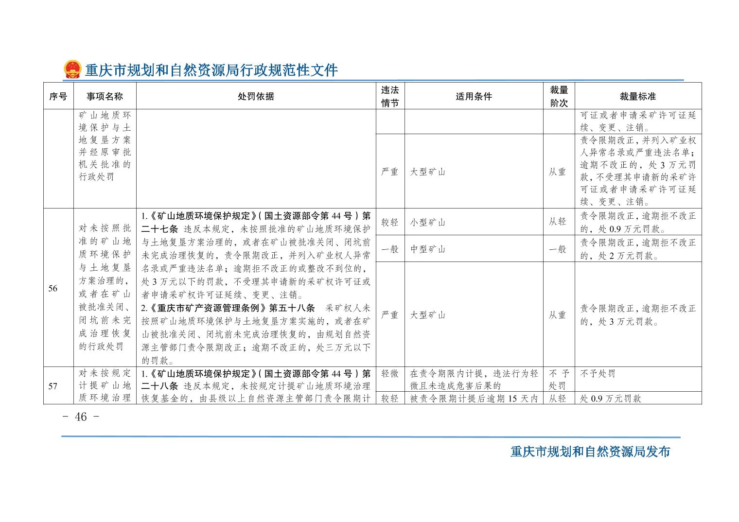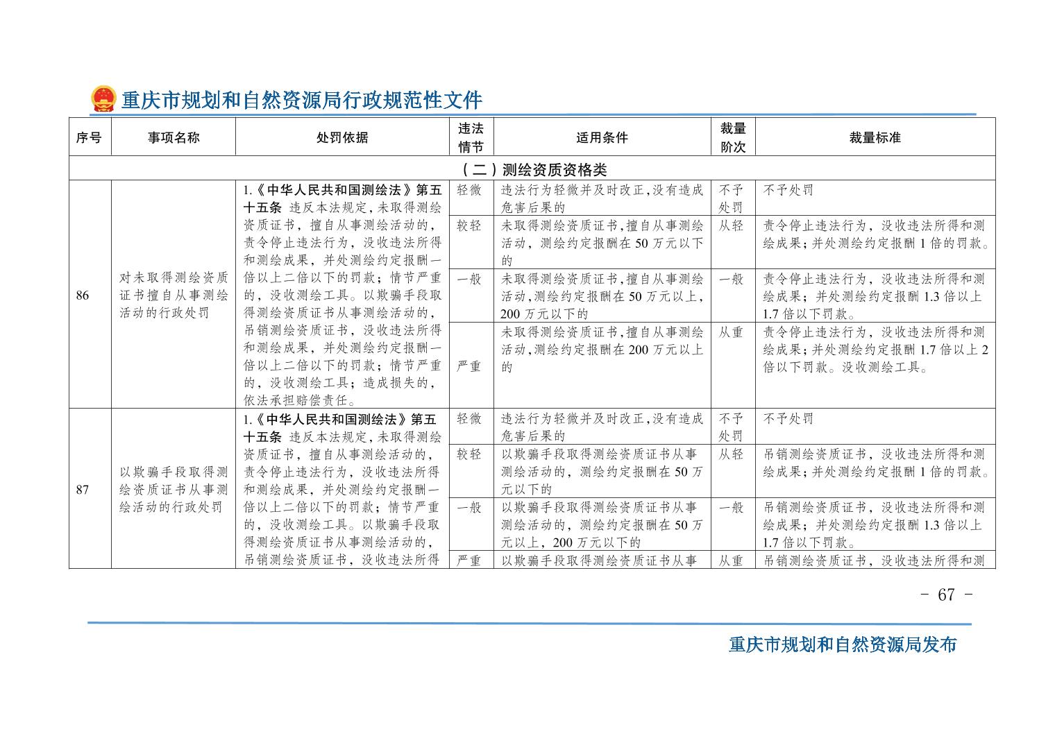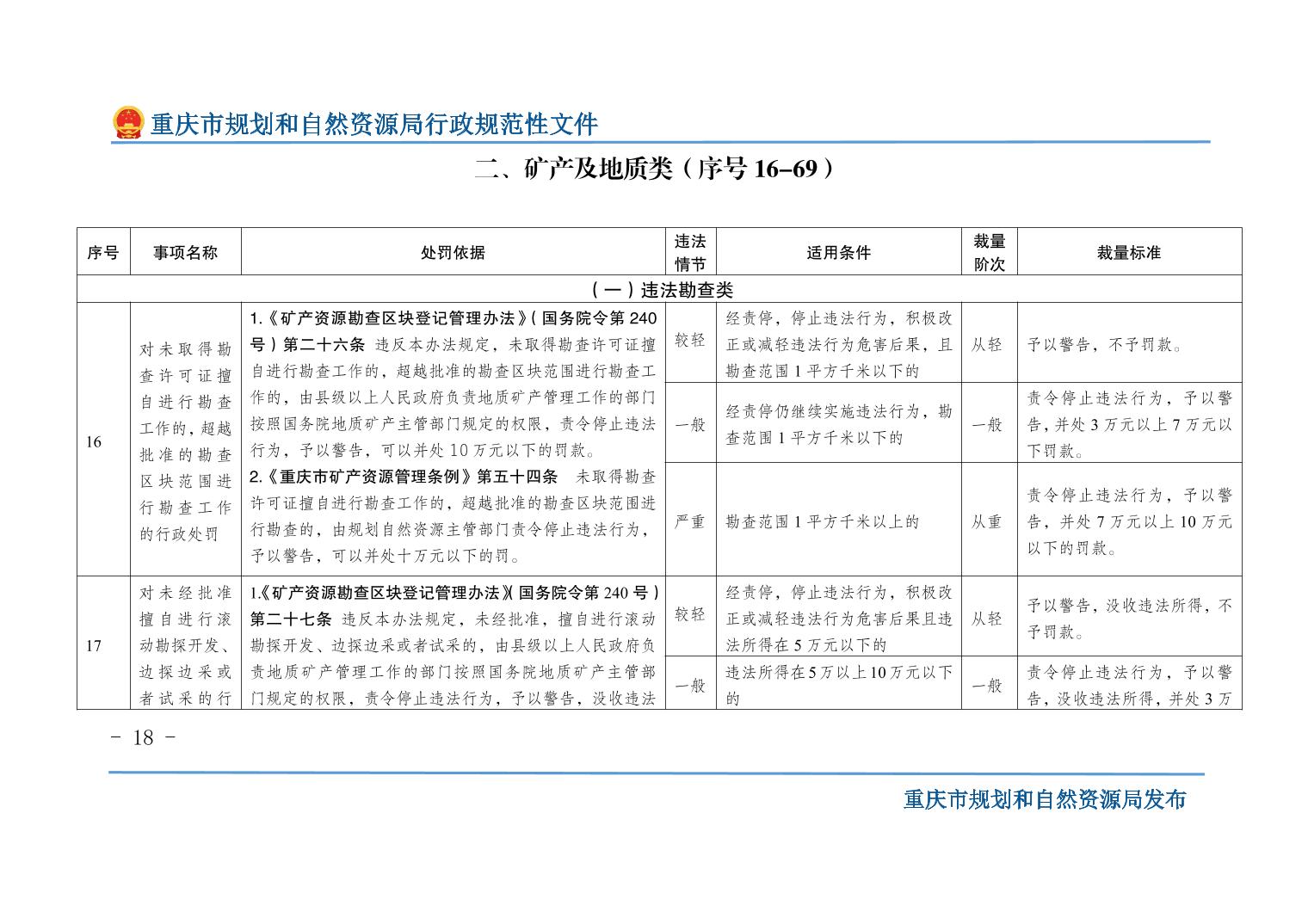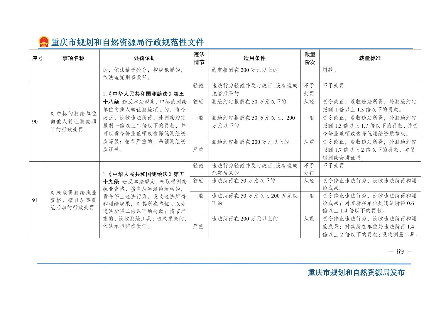重慶市規(guī)劃和自然資源局關(guān)于印發(fā)《重慶市規(guī)劃和自然資源行政處罰裁量基準(zhǔn)》的通知