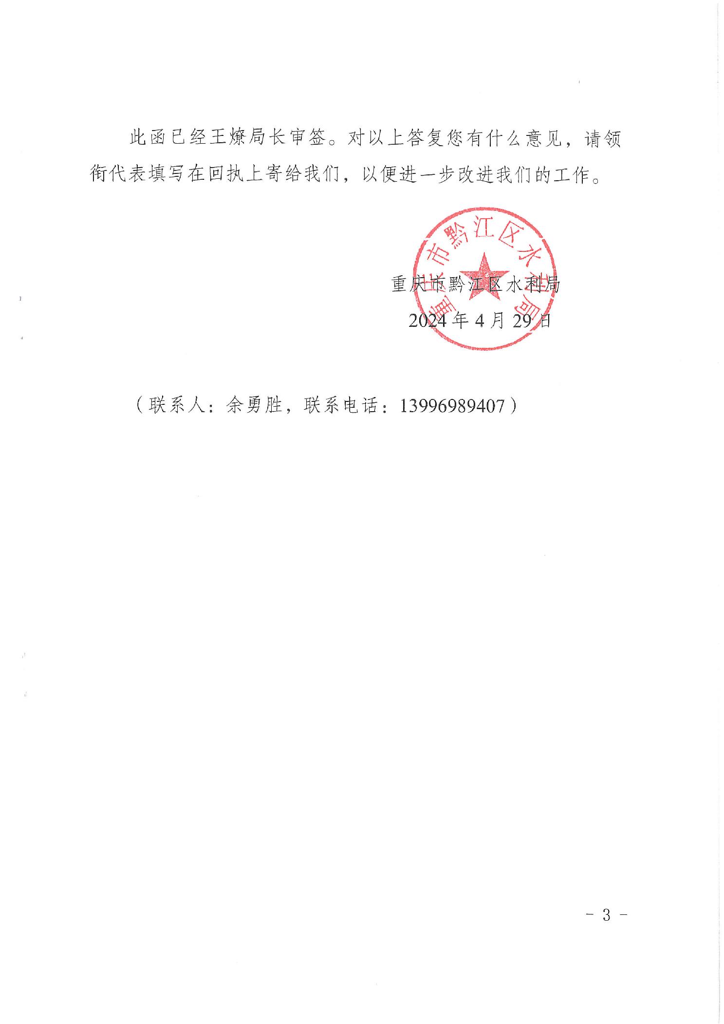 重慶市黔江區水利局關于區五屆人大四次會議第116號建議的答復函