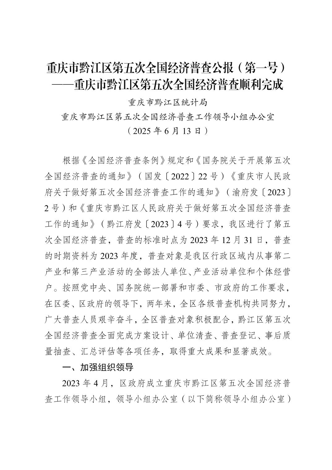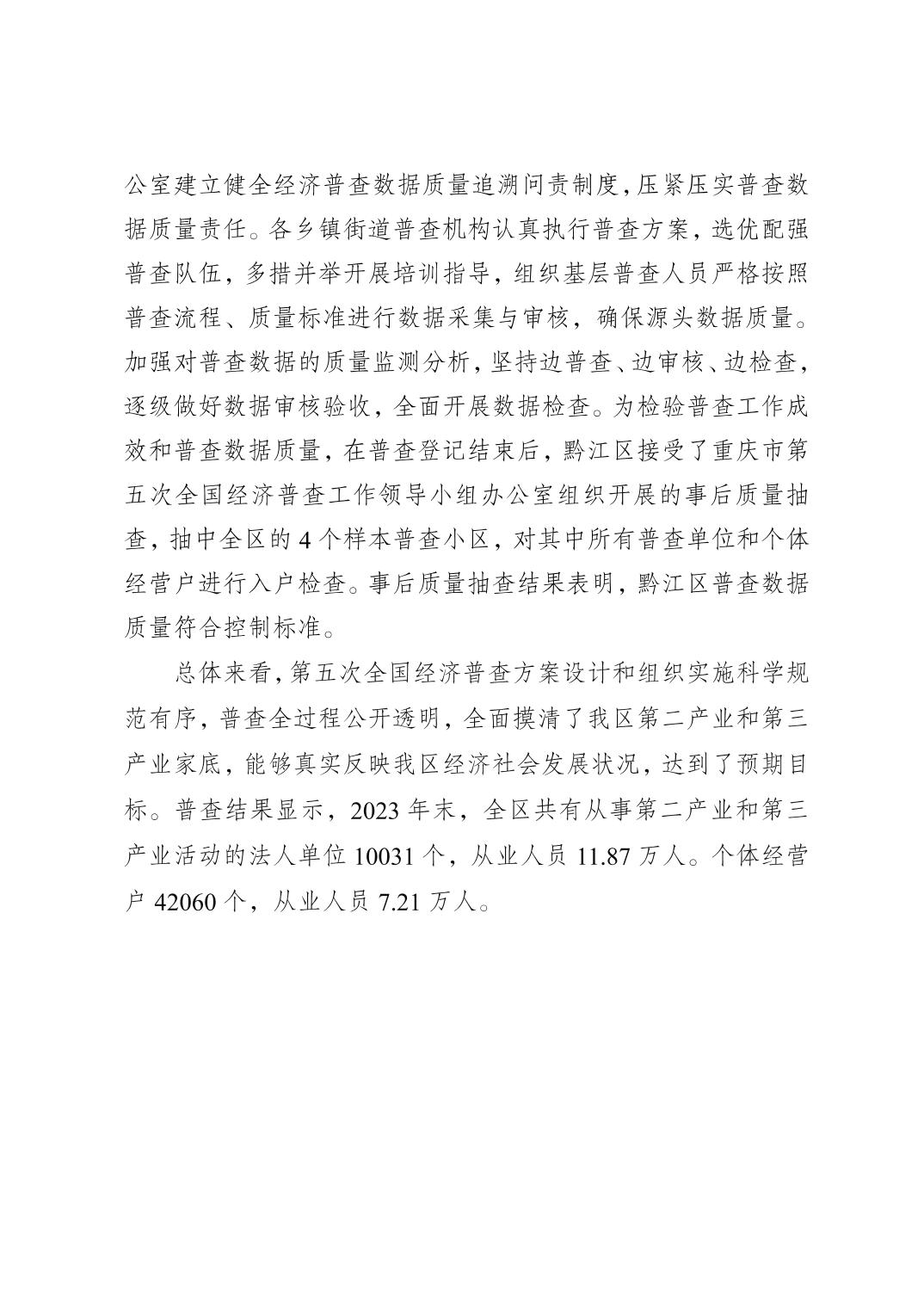 重慶市黔江區第五次全國經濟普查公報(第一號)">