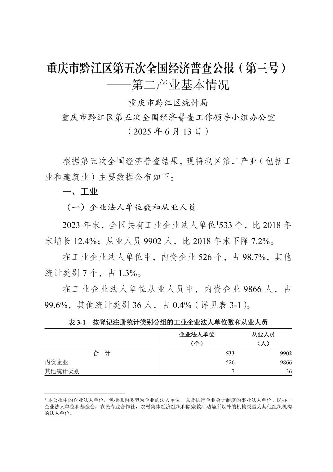 重慶市黔江區(qū)第五次全國經(jīng)濟普查公報(第三號)">