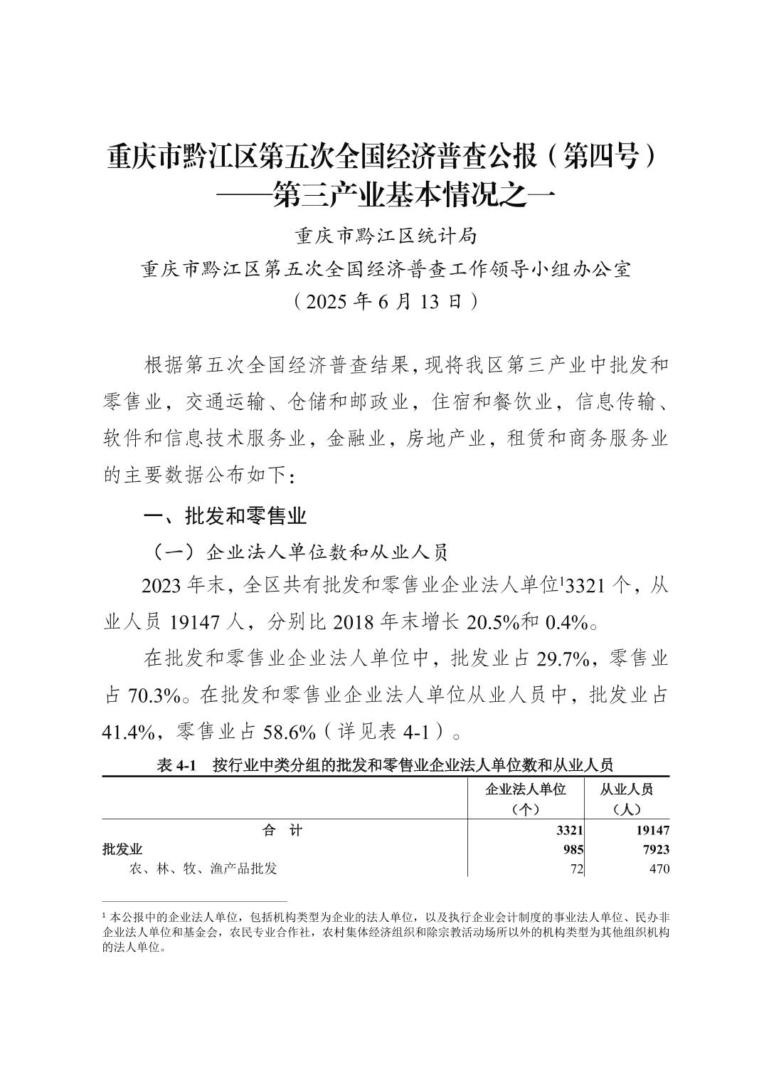 重慶市黔江區第五次全國經濟普查公報(第四號)">