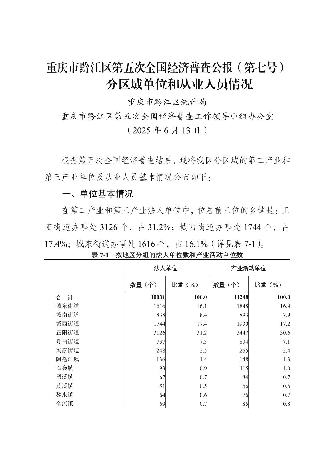 重慶市黔江區第五次全國經濟普查公報(第七號)">
