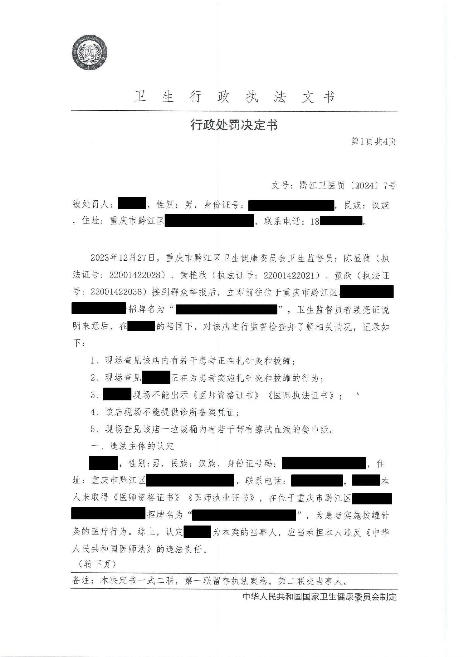 行政處罰決定書(黔江衛醫罰〔2024〕7號)">