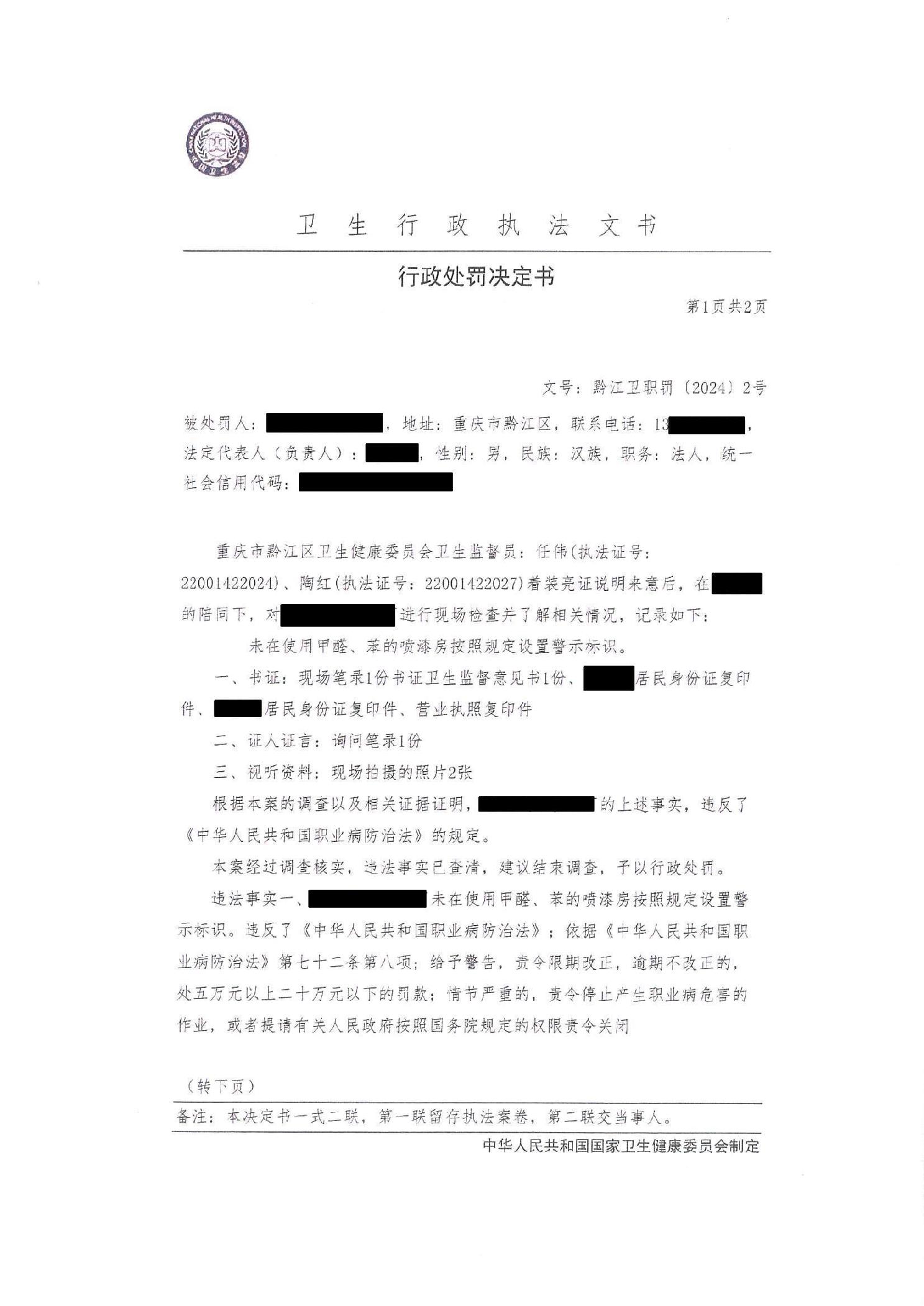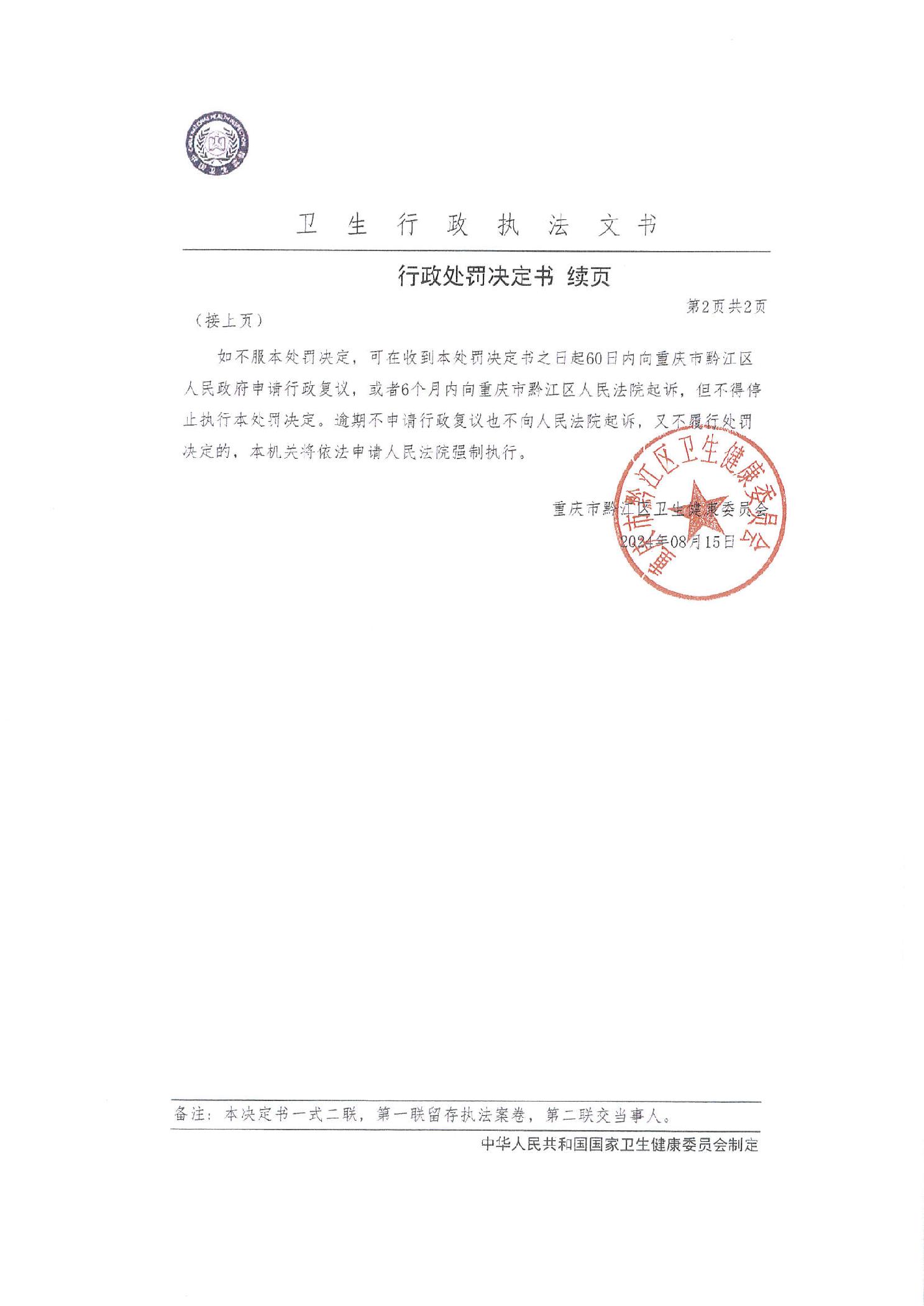 行政處罰決定書(黔江衛職罰〔2024〕2號)">