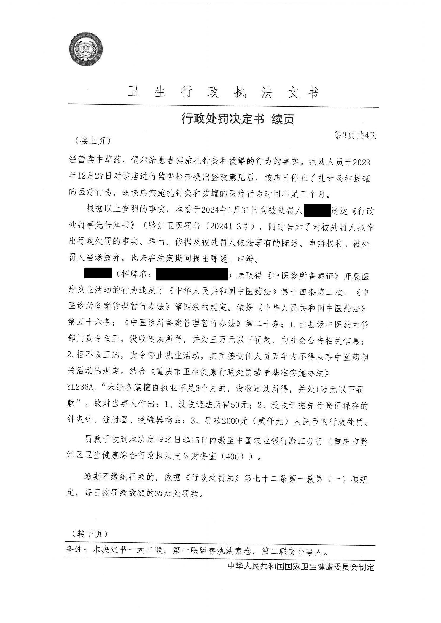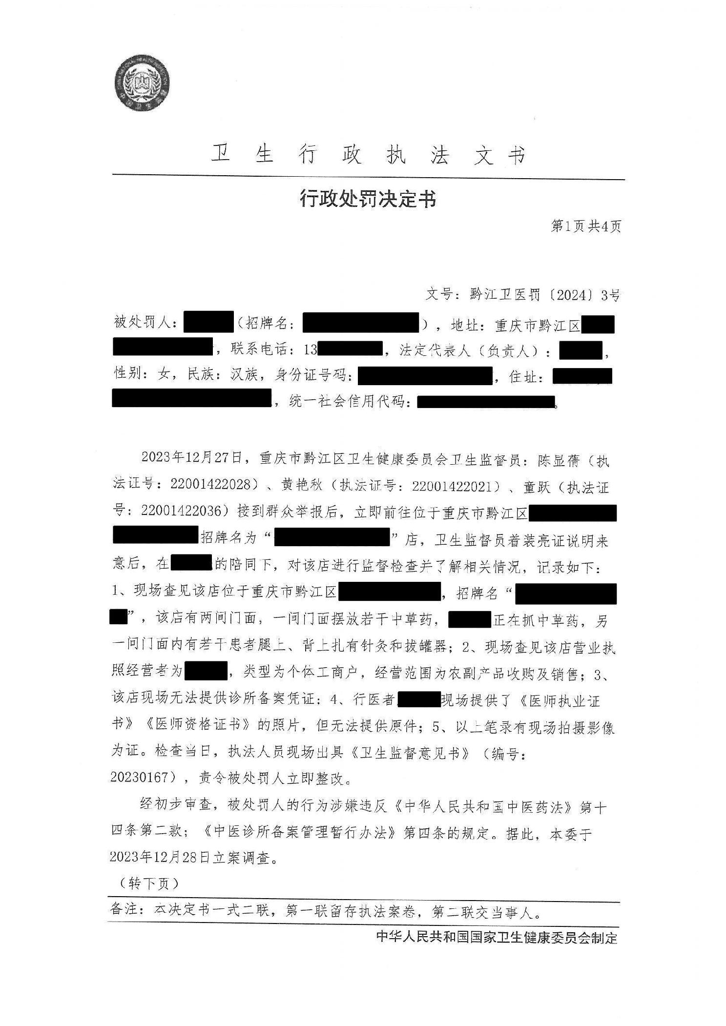 行政處罰決定書(黔江衛醫罰〔2024〕3號)">