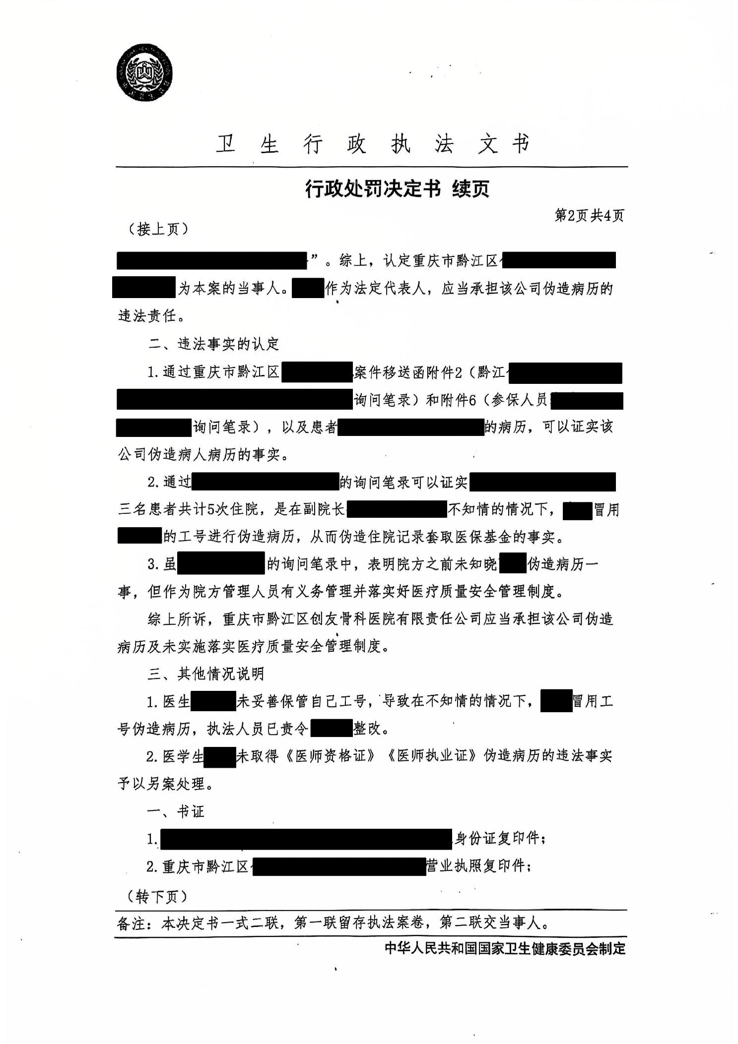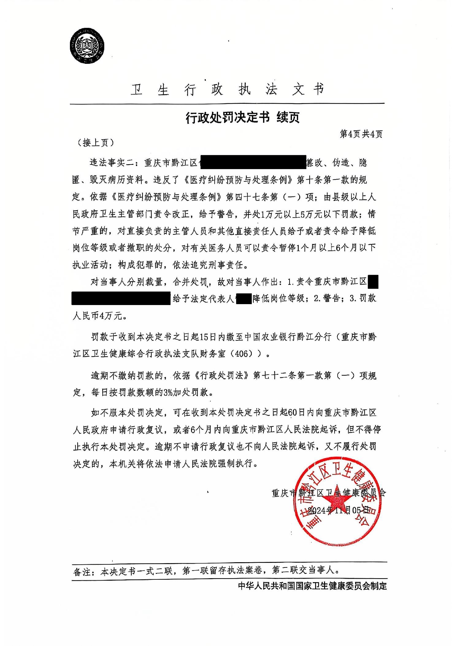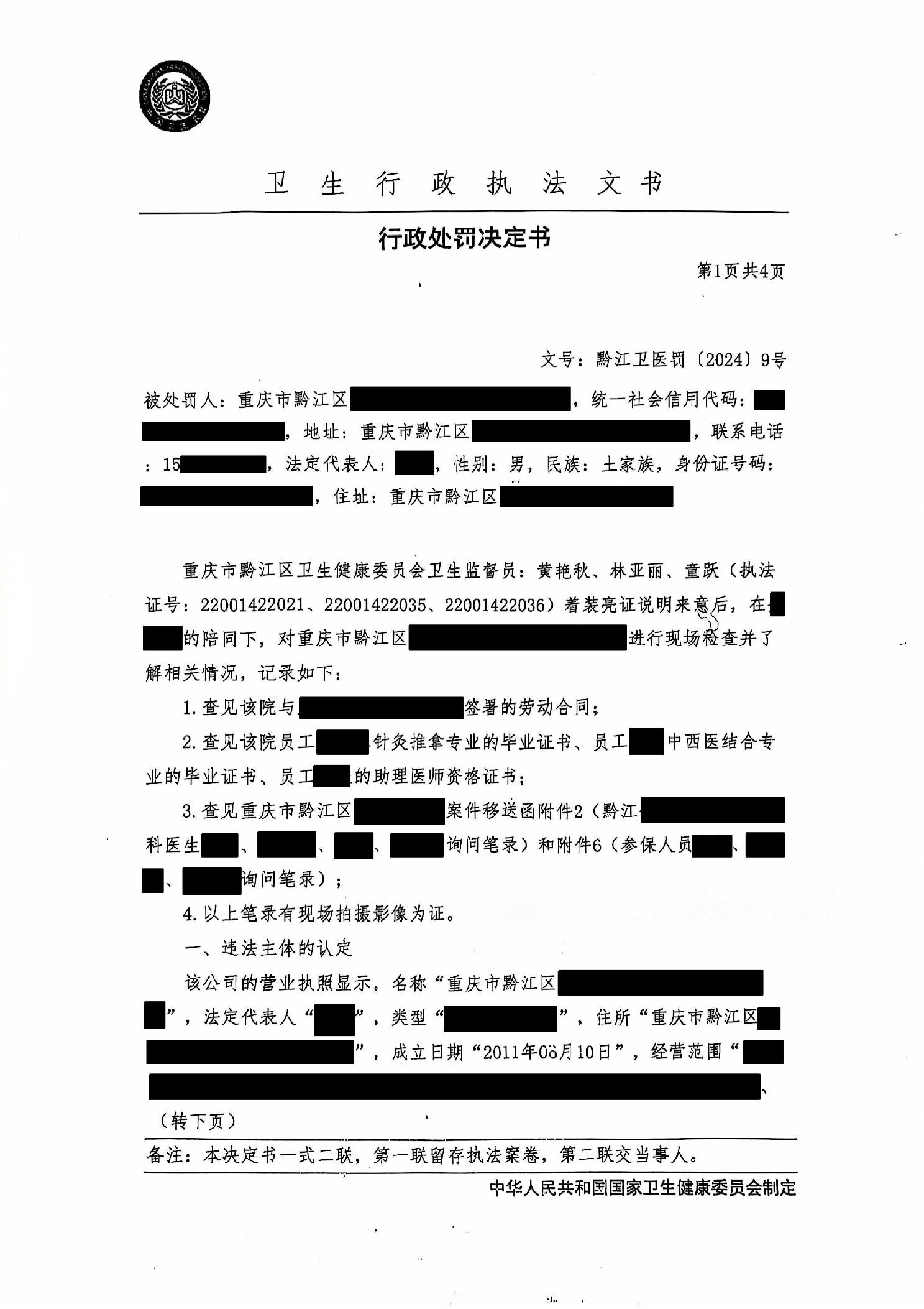 行政處罰決定書(黔江衛醫罰〔2024〕9號)">