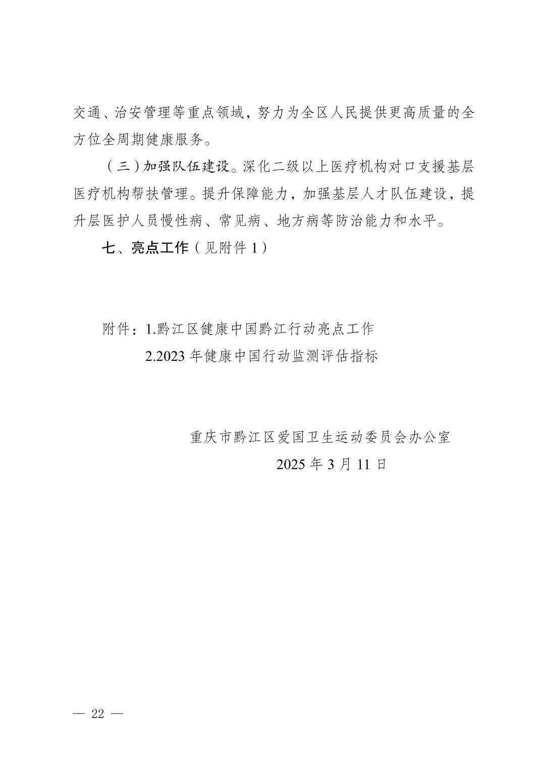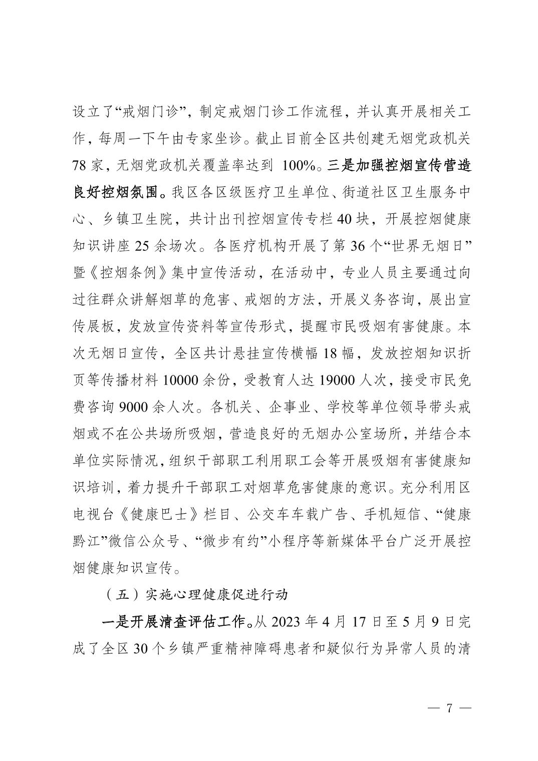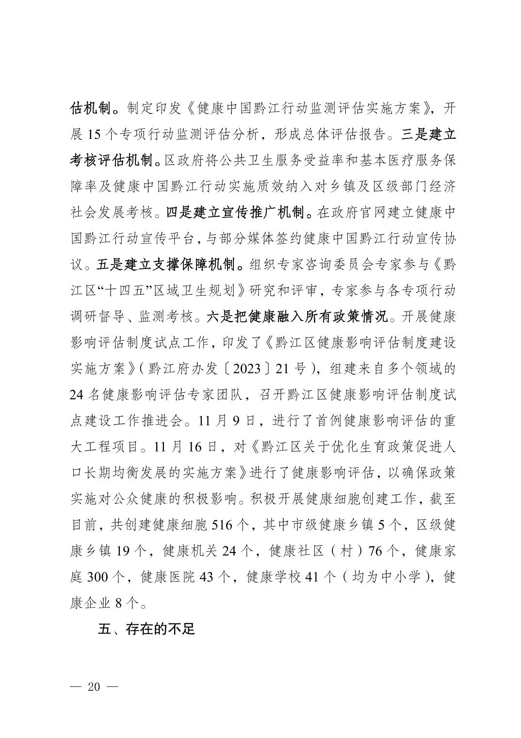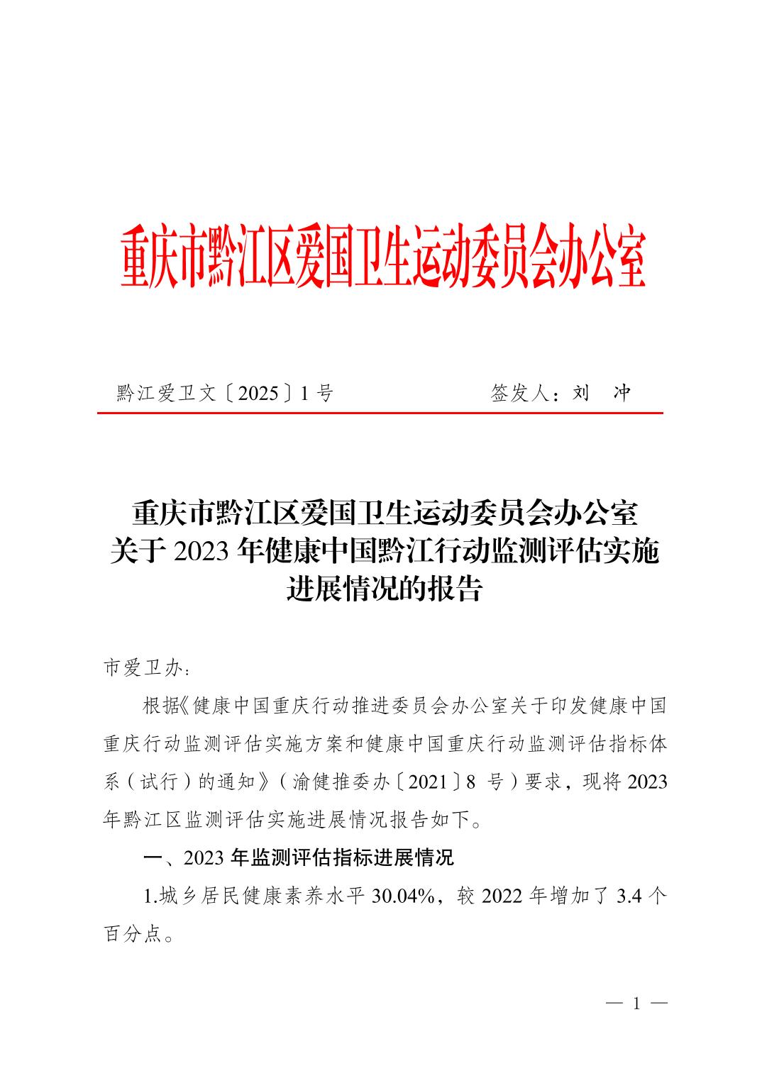 黔江愛衛文〔2025〕1號關于2023年健康中國黔江行動監測評估實施進展情況的報告">