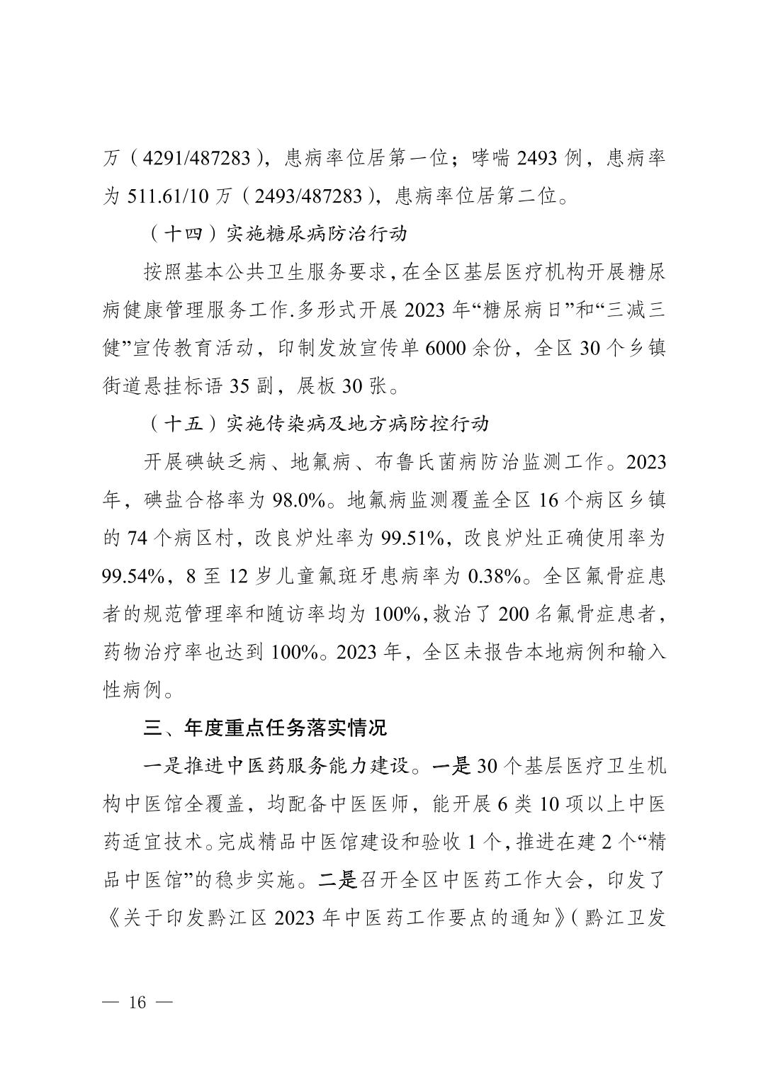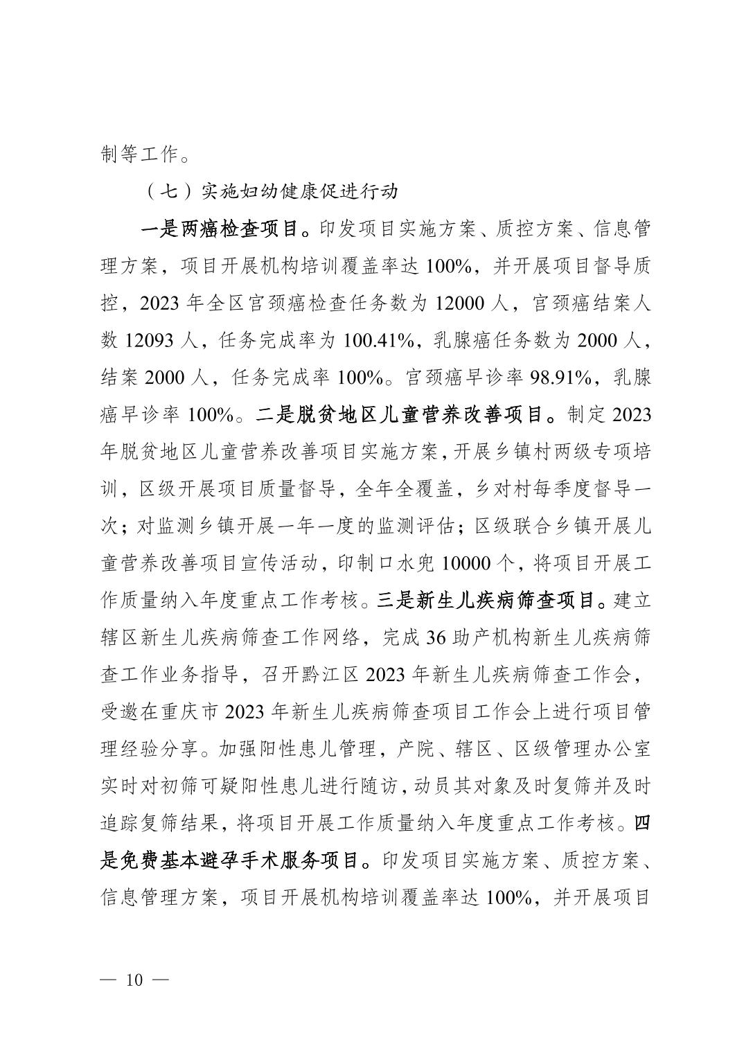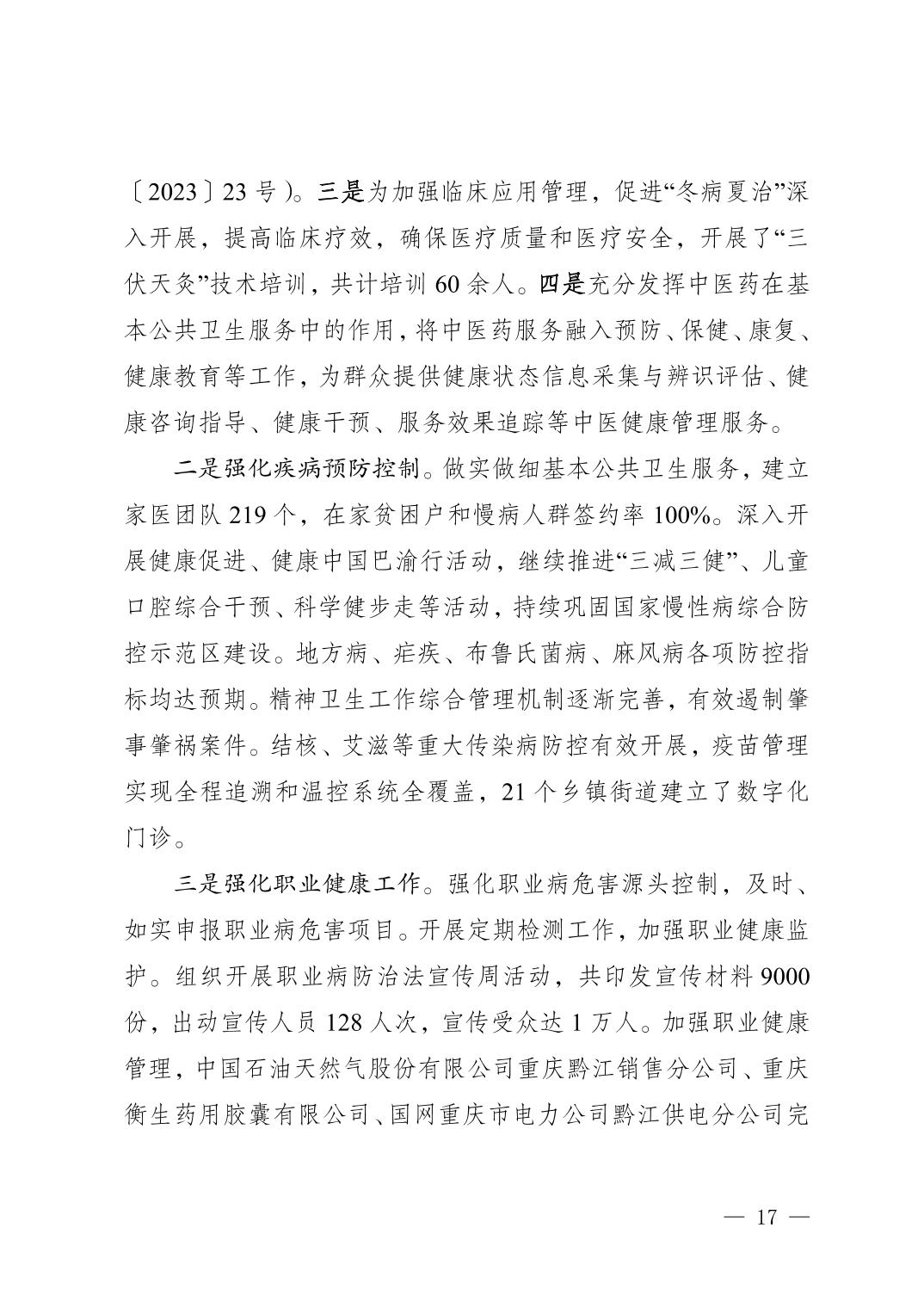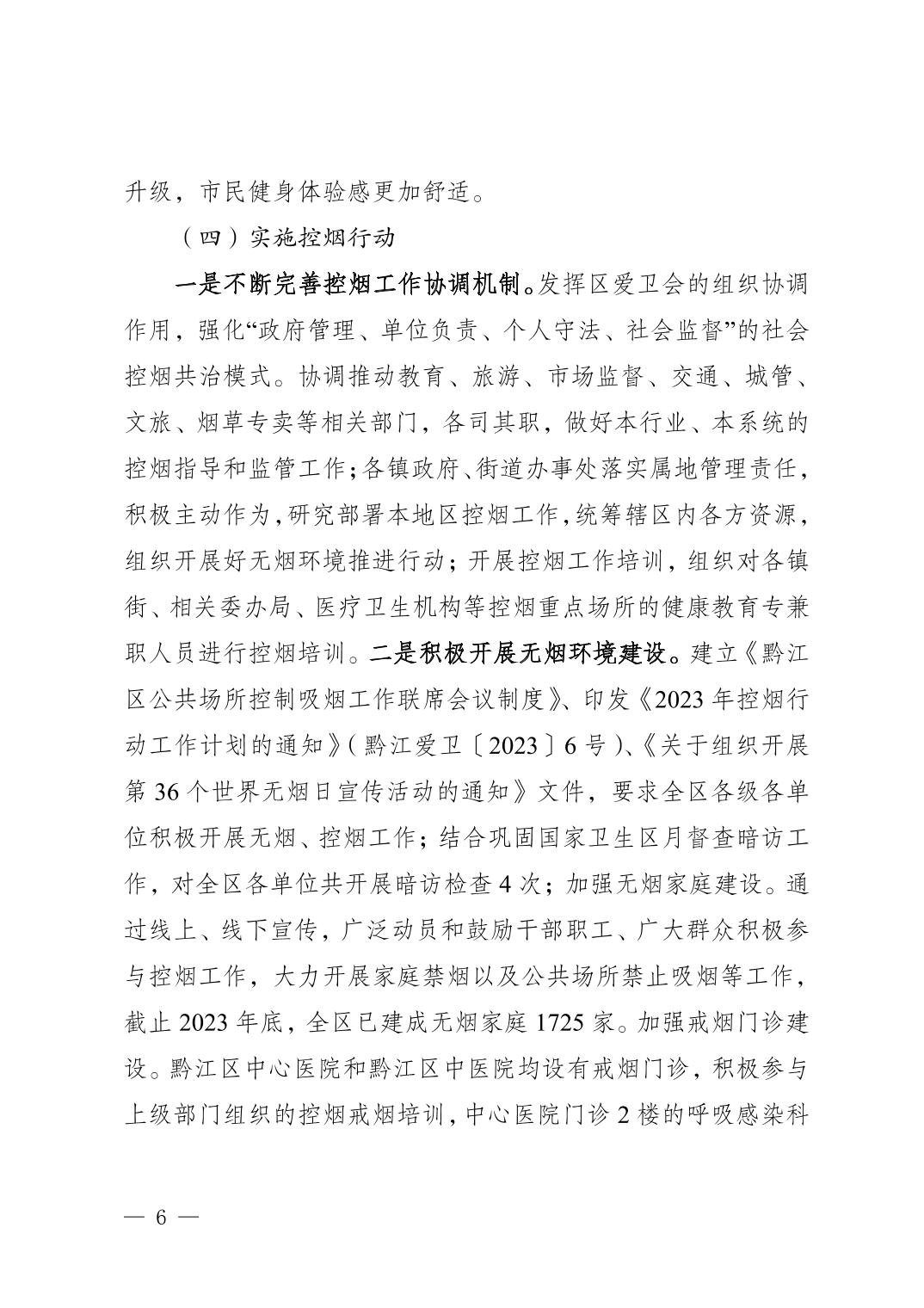 黔江愛衛文〔2025〕1號關于2023年健康中國黔江行動監測評估實施進展情況的報告">