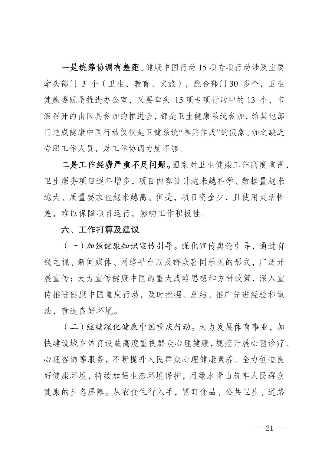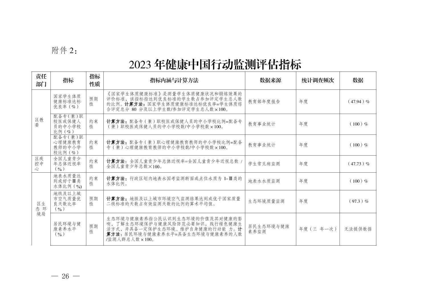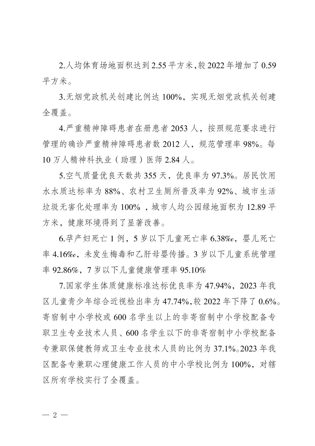 黔江愛衛文〔2025〕1號關于2023年健康中國黔江行動監測評估實施進展情況的報告