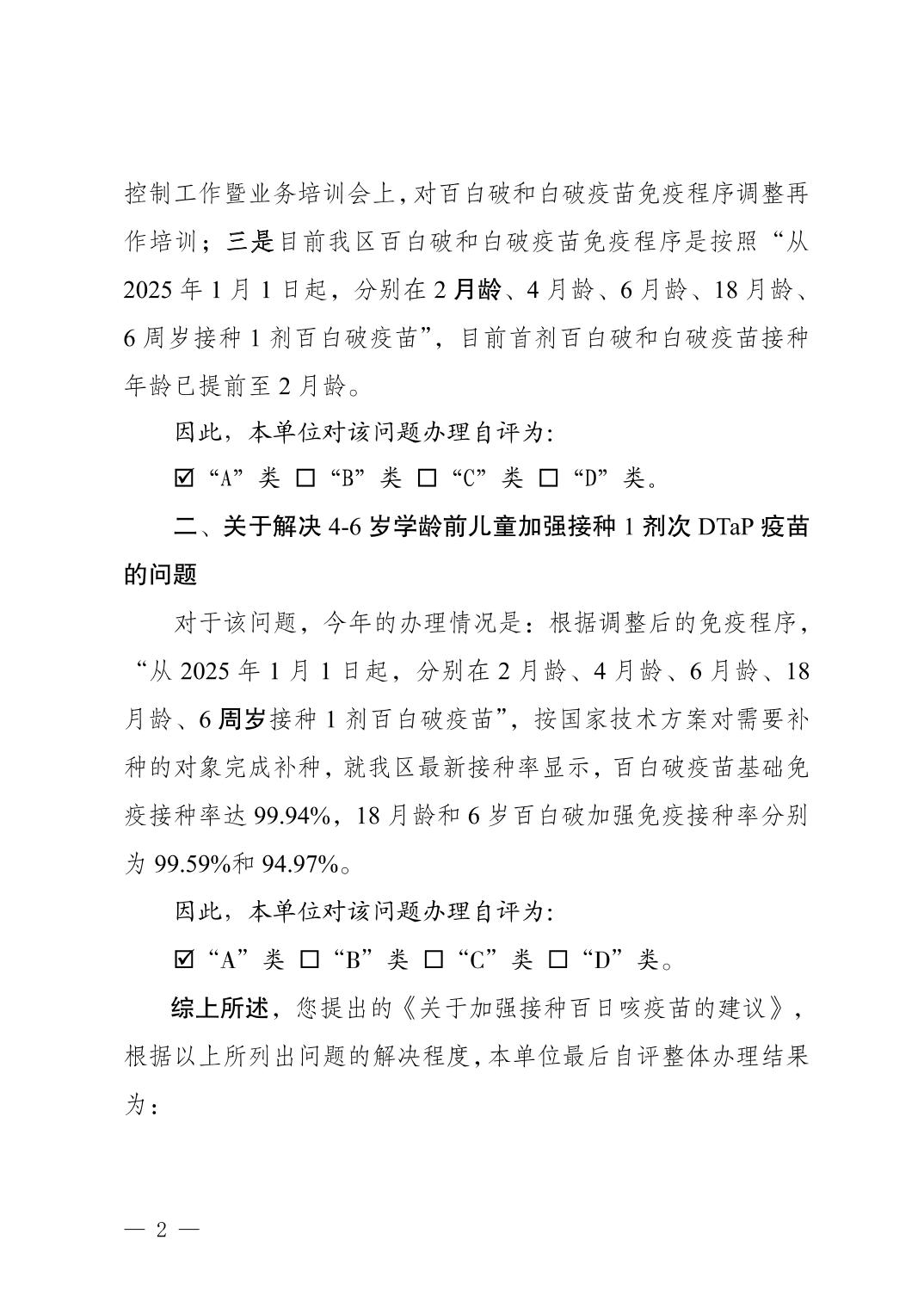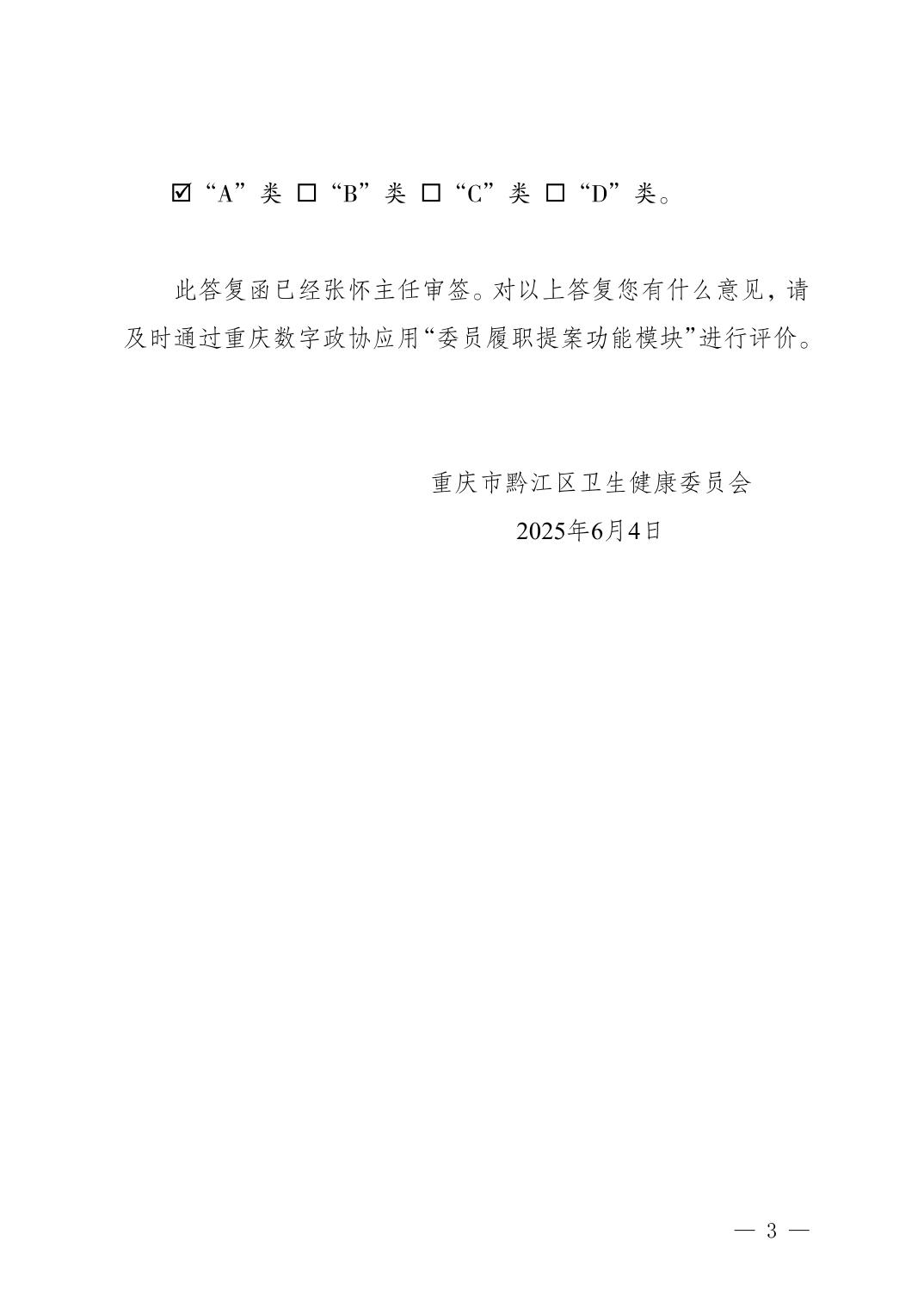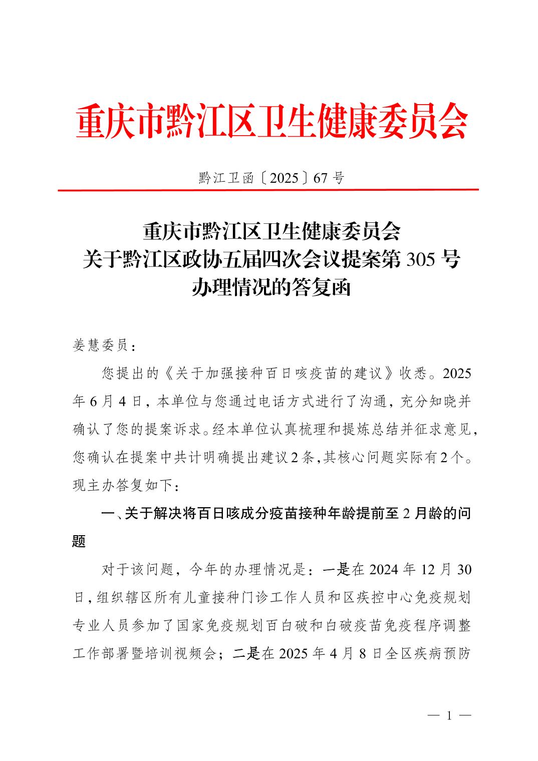重慶市黔江區衛生健康委員會關于黔江區政協五屆四次會議提案第305號辦理情況的答復函