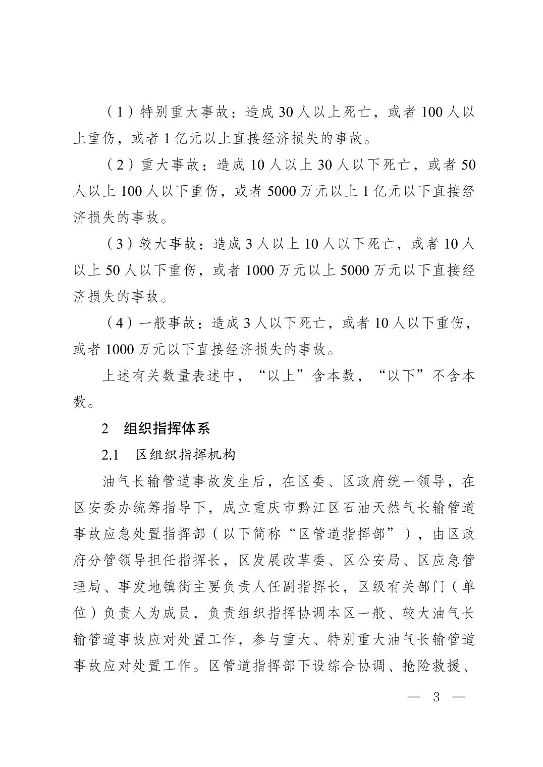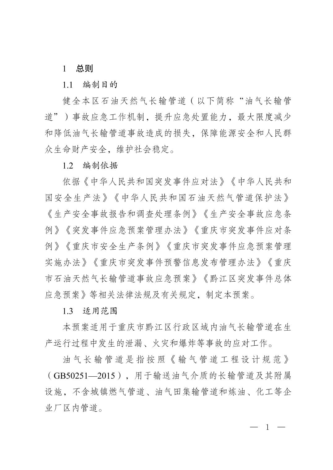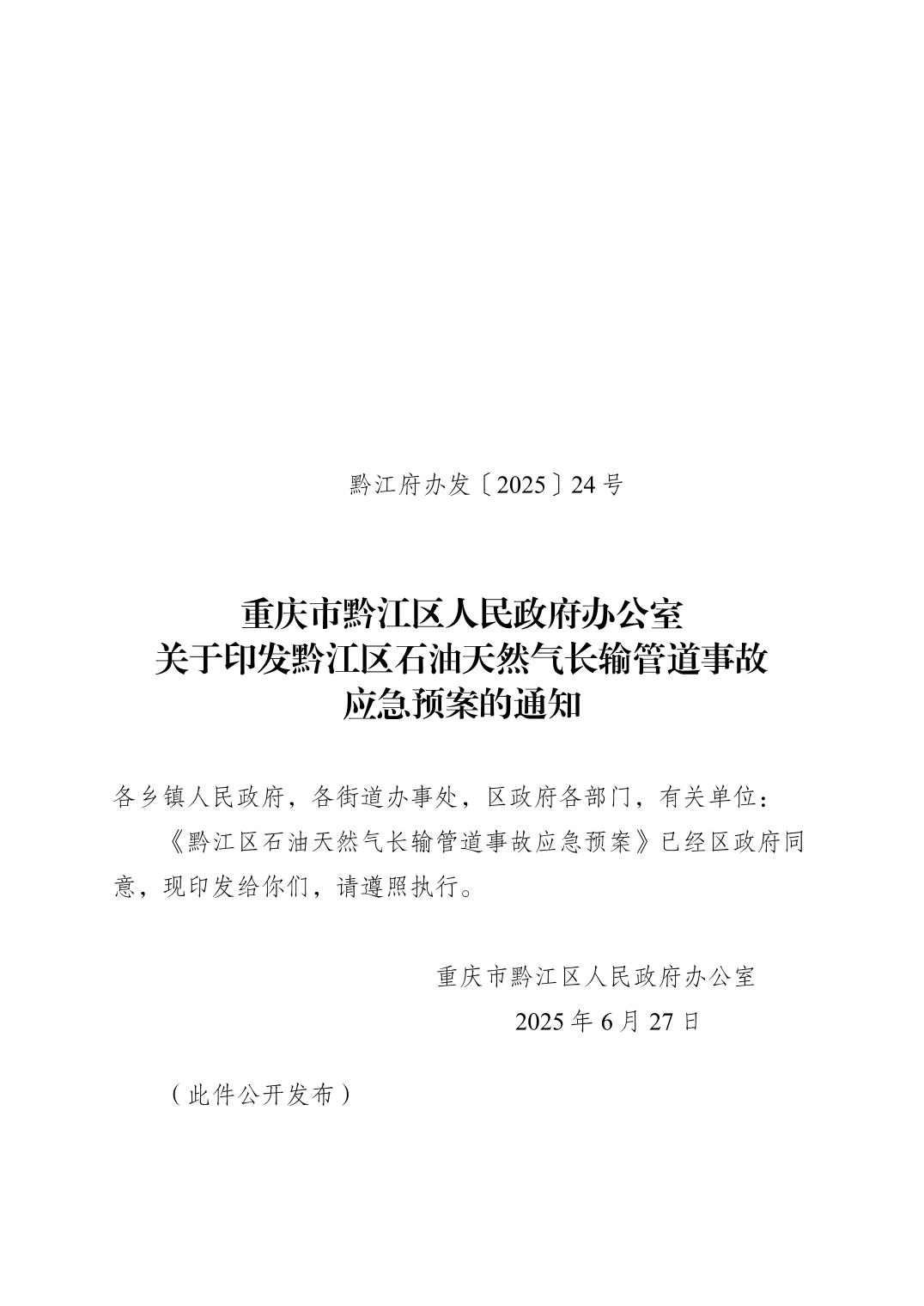 重慶市黔江區(qū)人民政府辦公室關(guān)于印發(fā)黔江區(qū)石油天然氣長輸管道事故