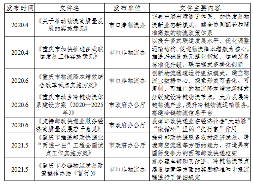 (一)國家層面政策梳理。“十三五”以來,國家臺了一系列政策和行業指導性文件。政策文件圍繞建立現代物流體系、打造專業化物流網絡、規范物流市場競爭、推進物流信息化建設等方面入手,指導物流行業高質量發展。把握國家物流發展大方向,推動黔江物流業實現高質量發展。一是完善物流基礎設施建設,構建功能完備、立體互聯的交通基礎設施,加強區內公路、鐵路、航空物流中心建設。二是構建專業化物流運輸網絡,大力構建供應鏈物流、冷鏈物流、商貿物流等專業化物流體系。三是完善城鄉物運輸網絡,構建“一點多能、一網多用、深度融合”的物流服務體系,提高農村物流服務覆蓋率。四是深化大數據、區塊鏈等信息技術在物流行業中的應用,推動區內物流業信息化、智能化、標準化、集約化發展,促進物流業降本增效。五是積極爭取國家有關國際物流發展的支持政策,推進黔江航空、鐵路口岸建設申報工作,推動物流國際化發展。