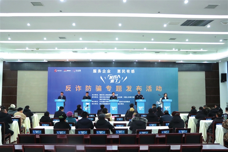 1月23日,“服務(wù)企業(yè) 惠民有感—發(fā)言人來了”重慶市反詐專題黔江發(fā)布活動,在黔江區(qū)規(guī)劃展覽館舉行。重慶市反詐中心、區(qū)公安局、區(qū)教委、人民銀行黔江分行新聞發(fā)言人,圍繞反詐防騙新形勢、新策略等相關(guān)工作,與群眾面對面交流,向群眾分享反詐防騙知識技巧,提醒大家歲末年尾守好“錢袋子”。