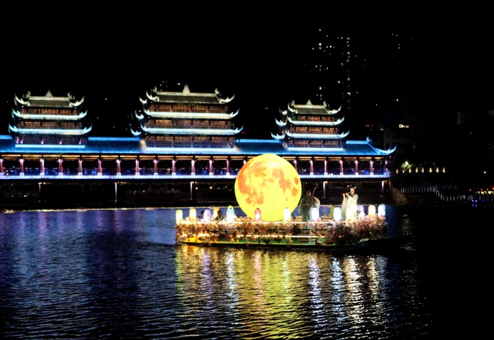 雙節(jié)期間,武陵水岸歌舞升平,美學(xué)市集熱鬧甚歡。持續(xù)推出的歌舞表演、水上飛人、秋月共賞、民俗體驗、品鑒美食、購物娛樂等“慶國慶、過中秋”活動,讓當(dāng)?shù)厥忻窈陀慰驮跉g聲笑語中感受節(jié)日的濃厚氛圍與家國情懷。(記者 李詩素 文/圖)