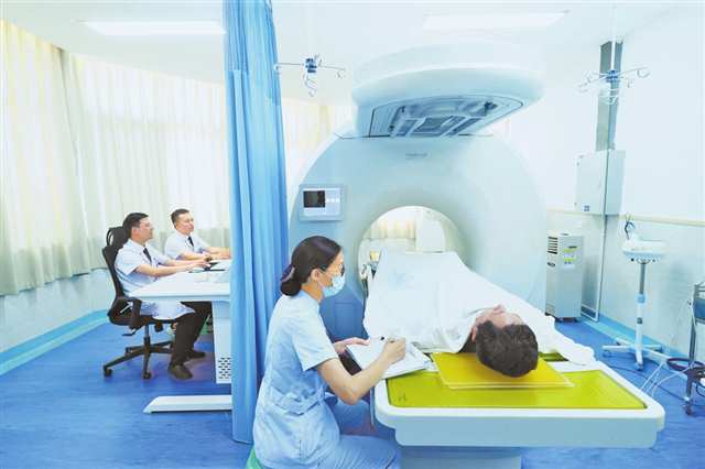 黔江區(qū)中心醫(yī)院HIFU治療團(tuán)隊(duì)利用JC300聚焦超聲腫瘤治療系統(tǒng)對(duì)患者進(jìn)行治療? 攝/楊敏